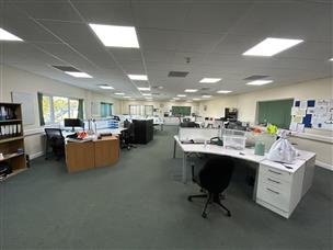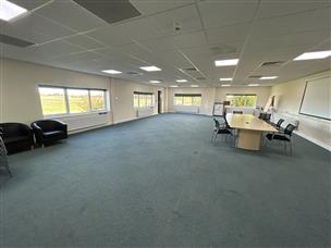 Two storey building, having air-conditioned space. The building has an impressive full height central glazed reception/atrium, main open plan office, individual office and quality control room, together with Kitchen and W/C facilities. Board Room/open plan office, additional offices, kitchen, W/Cs and storeroom to first floor.