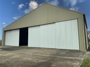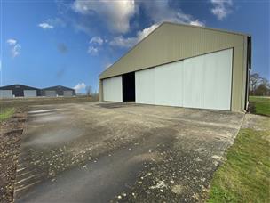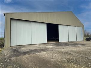 The hanger comprises a modern steel portal framed building with high eves (5.60m-9.50m) and six manually operated concertina doors to the South side. There is also a steel pedestrian door on the North side of the building. To the South of the building is a concrete apron extending to approx.12.00m x 25.00m - this connects directly to the second air strip.
