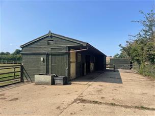 Equestrian land of 3.24 ACRES / 1.31 hectares (stms) with timber stable block on concrete hard standing, parking, field shelter, storage container, parking area and four fenced paddocks.
