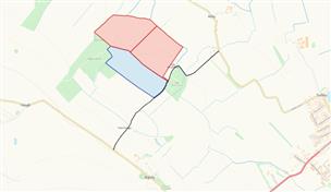 67.70 acres (27.40 ha) comprising two near equally sized field parcels as indicated shaded red on the plan across.