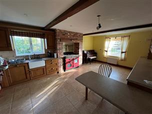 19' 4" x 13' 0" (5.91m x 3.97m) Ceramic floor tiles, full height brick chimney breast with fitted cooker hood situated above the Rangemaster dual fuel electric and calor gas Range style cooker. Traditional fitted base cupboards and drawers, eye level wall cupboards, glazed display cabinets, Belfast sink with mixer tap, built-in dishwasher, 2 radiators, UPVC windows to the front and side elevations, recessed ceiling lights, door to: