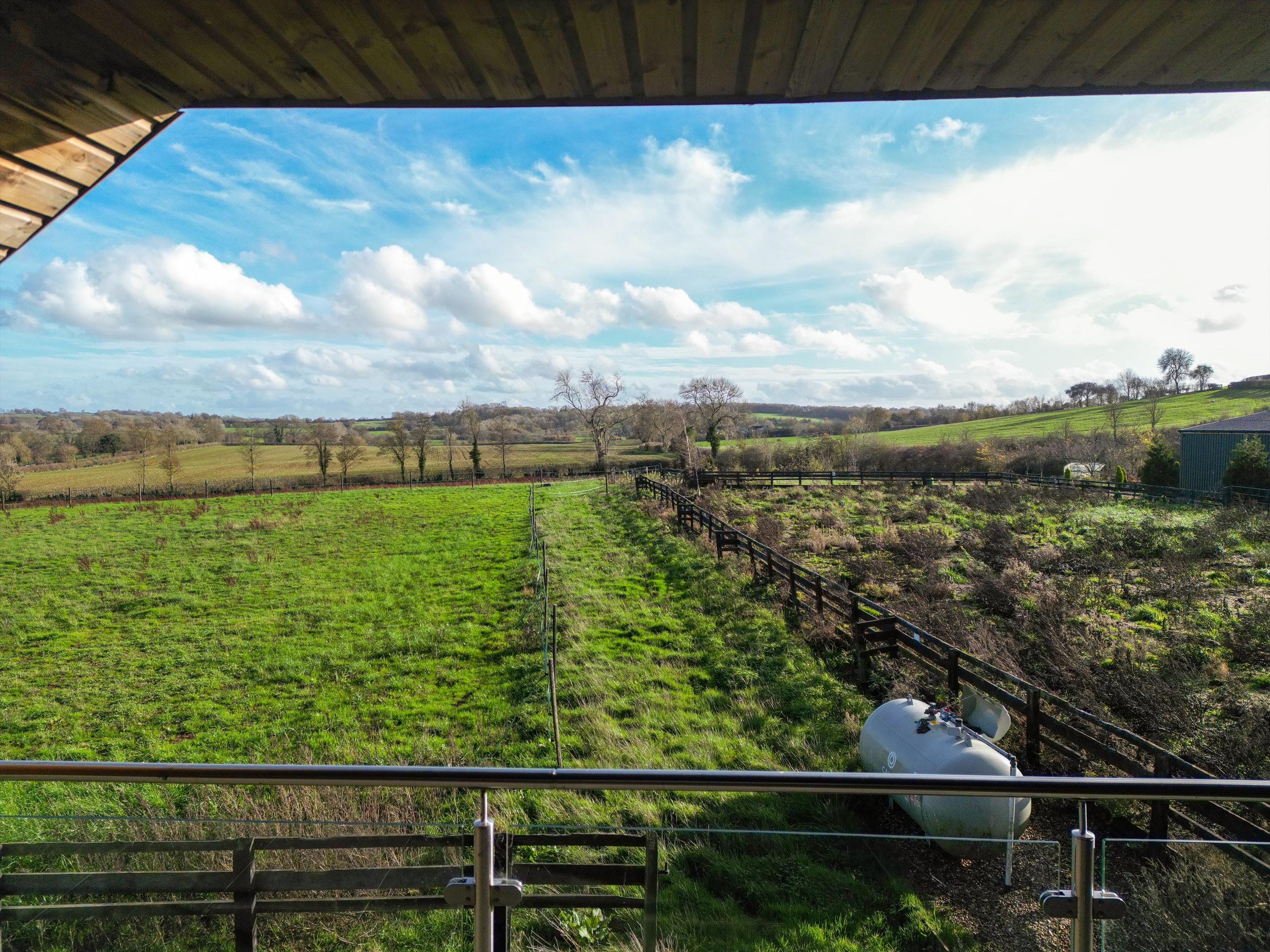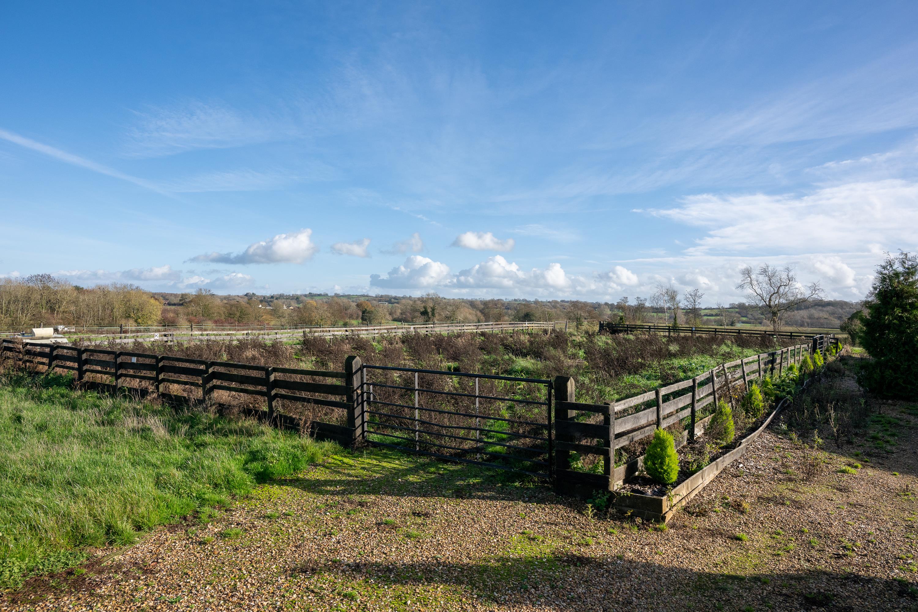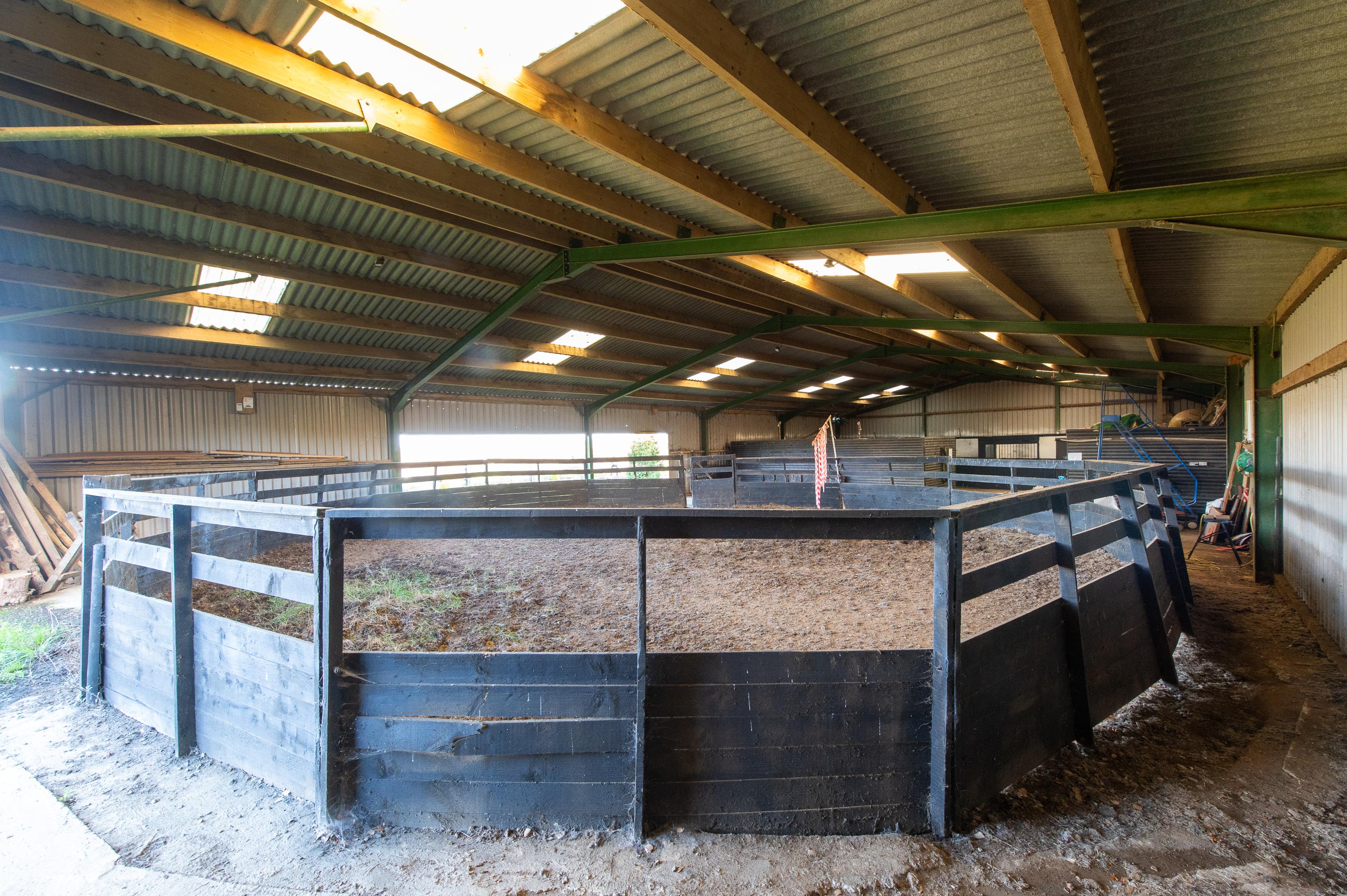 The stable yard and barn with internal stables and lunge ring can provide stabling for up to 14 horses. The property is well-suited to a buyer with equestrian interests. A 40 x 20 metre manege will require clearing and resurfacing.