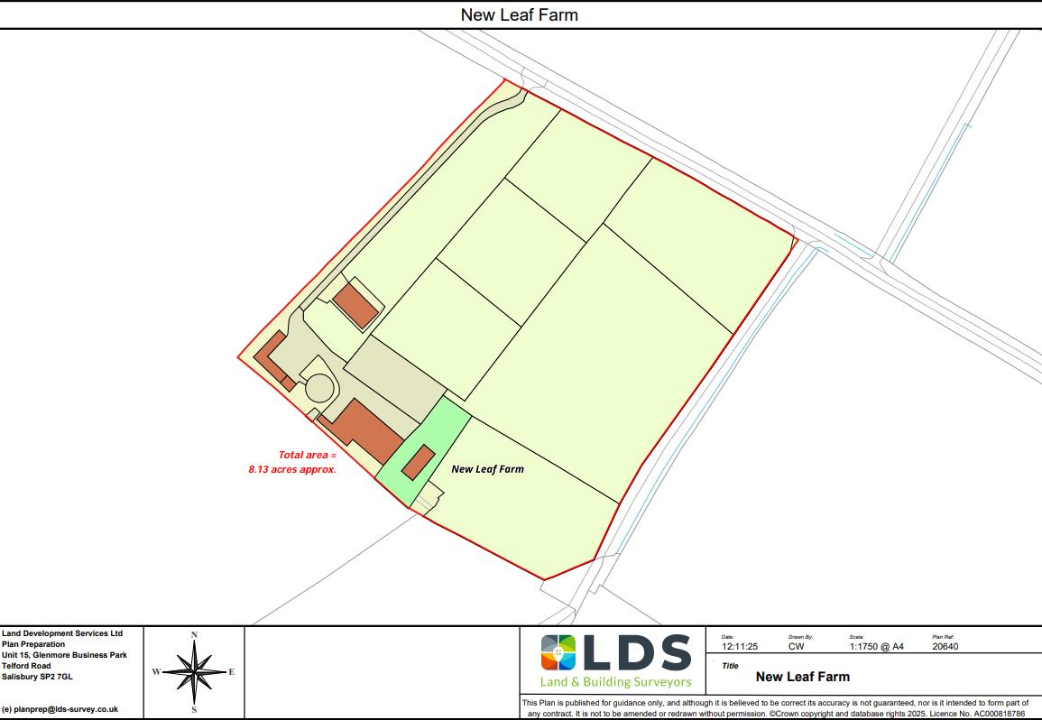 The land is divided into paddocks. There is a partly constructed pond by the road. A track along the south-east boundary of the property is not part of the land, and provides access to the field to the south of New Leaf Farm.