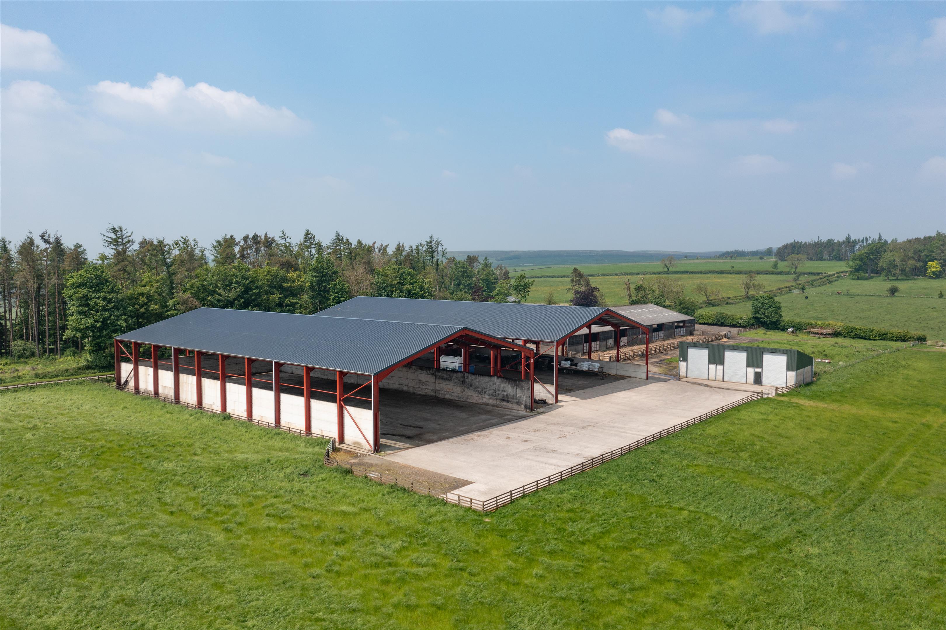The farm has been run as a highly productive ring-fenced livestock unit with fertile quality pasture that has had steady investment over the years. The land is also interspersed with mature mixed woodland areas which add to the amenity and sporting possibilities. The farmland offers the opportunity to focus on commercial production, alternatively there is potential for natural capital and conservation to take prominence. There are two recently constructed steel-framed buildings with significant ridge heights and both extending to approximately 15,000 sq ft. In addition is a new storage shed along with an existing cattle shed of approximately 16,000 sq ft. This largely new yard completes this excellent livestock unit and allows a new owner to free up some of the farm buildings around the house for alternative uses.