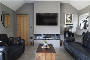 There are three bedrooms arranged across the first floor, all well-appointed in tasteful colour schemes. The stunning principal suite has been designed to make the most of the amazing, elevated position. Full height glazing reaches up to the peak of the vaulted ceiling to frame the incredible views over unspoiled Northumberland countryside, sliding doors open the room to the outdoors, where approved planning permission is in place for an extension to the living room below, with a balcony and seating area above. The suite is complemented by a luxurious en-suite shower room, fitted with a sleek contemporary suite and stylish tiling. Two further double bedrooms are served by a family bathroom with a suite comprising a bath with shower over, wash hand basin and WC.
