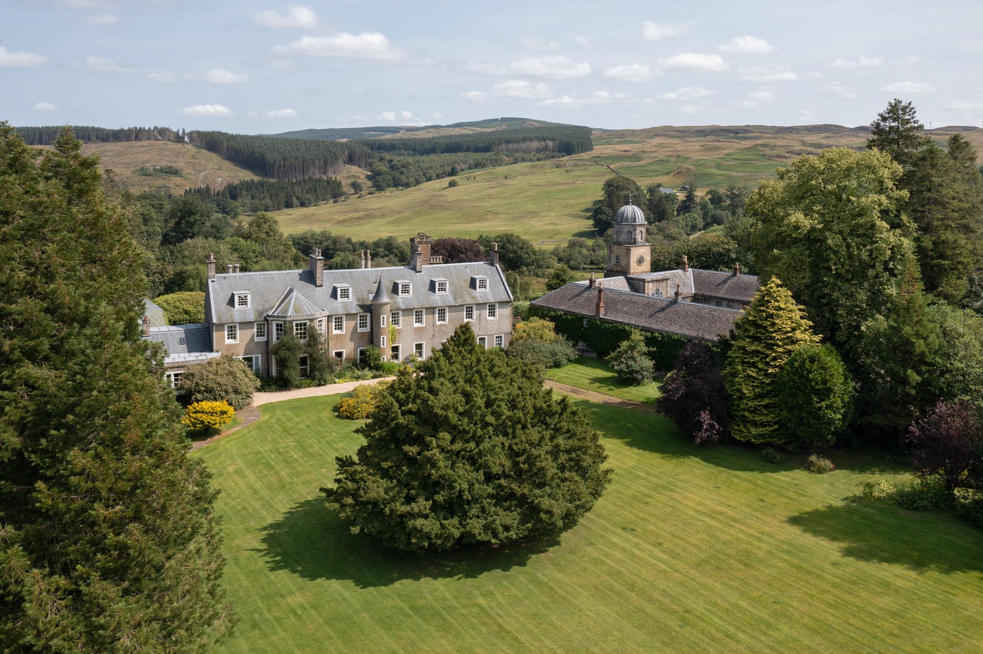 Set peacefully amongst the hills above the River Doon, the main House belongs naturally within its Designed Landscape, assessed by Historic Environment Scotland as one of the top 4 in Scotland. Dating from the eighteenth century, the house is sunny and charming and of a good manageable size. It enjoys a quiet and private setting, reached along a 2? mile drive.