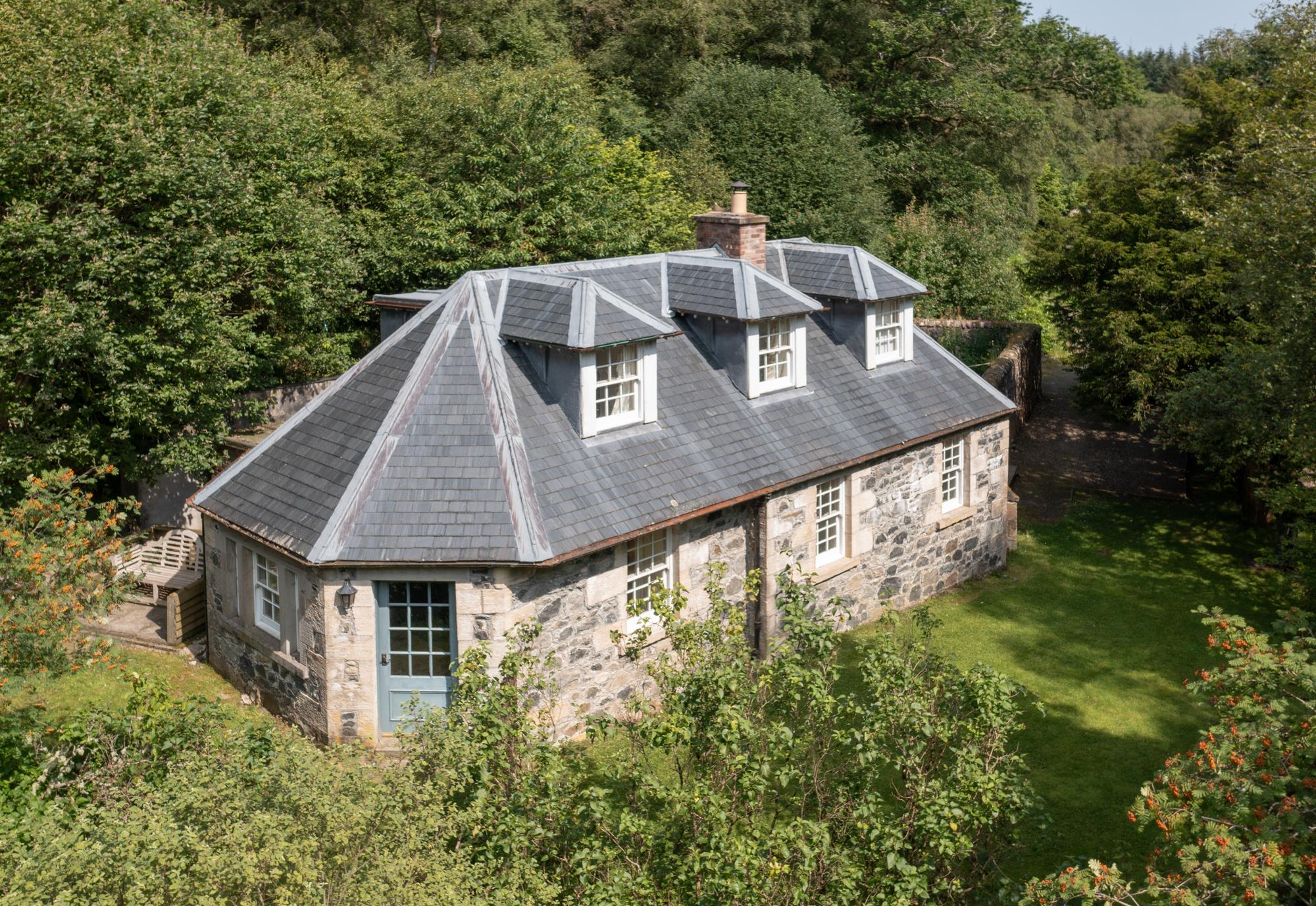 Originally the head gardener's house and situated within a woodland glade, the accommodation includes a good sized kitchen, sitting room with open fireplace, 2 bedrooms and a bathroom.