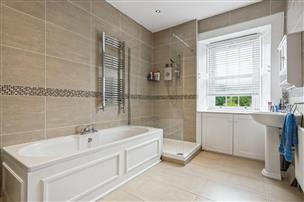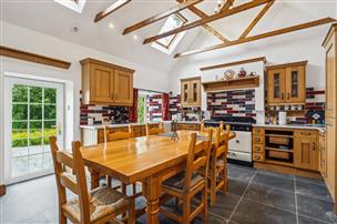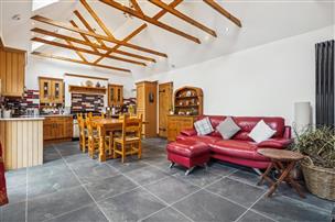 Internally the property comprises well-proportioned rooms, the entrance vestibule leads through a half-glazed door to an impressive and welcoming entrance hall with stone pillar, oak flooring, ornate cornicing and ceiling rose. The bright living room also has oak flooring, sash and case windows, original deep skirtings and shutters and a stone open fireplace. The heart of the home is the stunning kitchen/dining/living room with vaulted beamed ceiling, tiled flooring with under floor heating and a range of fitted base and wall units and Quartz worktops, butler sink with Quooker tap, integrated dishwasher, AEG fridge/freezer, electric Rangemaster with double oven, grill and 6 ring gas hob. The living area has a Jotul multi fuel stove set in stone backdrop with slate hearth and oak mantel. There is a glazed door to the gardens and patio area from which the fabulous views can be fully appreciated. The office is fitted with half height wood panelling. The utility room has tiled flooring, plumbing for a washing machine, tumble drier and additional fridge and freezer if required. There is access to the garden via a porch from the utility room. The single storey extension is from the kitchen where there are two double bedrooms and a fully tiled shower room with circular shower enclosure, w.c., wash hand basin, underfloor heating and heated towel rail. There is access to a small enclosed garden from this wing of the house making it suitable as a self-contained annexe if required. A beautiful sweeping staircase rises from the hall to the first floor with ornate cornicing and ceiling rose. There are three spacious double bedrooms, the master having dual aspect windows. The bathroom is fully tiled with bath, separate shower cubicle, w.c., wash hand basin, two heated towel rails and benefits from electric underfloor heating. The property is fully double glazed and benefits from ample cupboard space.