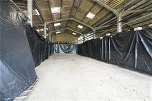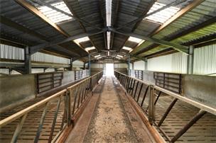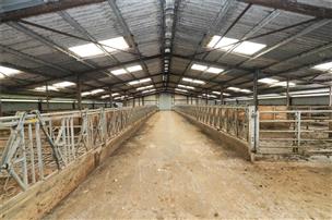 Steel portal frame construction, concrete panel walls, vent air cladding, fibre cement roof. With a central feed passage and cattle courts. Housing around 70 - 80 cattle.