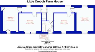 Little Creoch Farmhouse is of stone and slate construction with a later brick extension. The farmhouse comprises the following accommodation over two stories: Kitchen, living room, dining room, W.C., Utility Room, on the first storey there are four further bedrooms and a family bathroom. In addition, there is a floored cheese loft providing additional storage space. The services include mains water, mains electric, private drainage and is heated with a biomass boiler (pellet). The farmhouse is set within the traditional courtyard with adjoining outbuildings and benefits from ample parking to the front and garden area to the rear.
