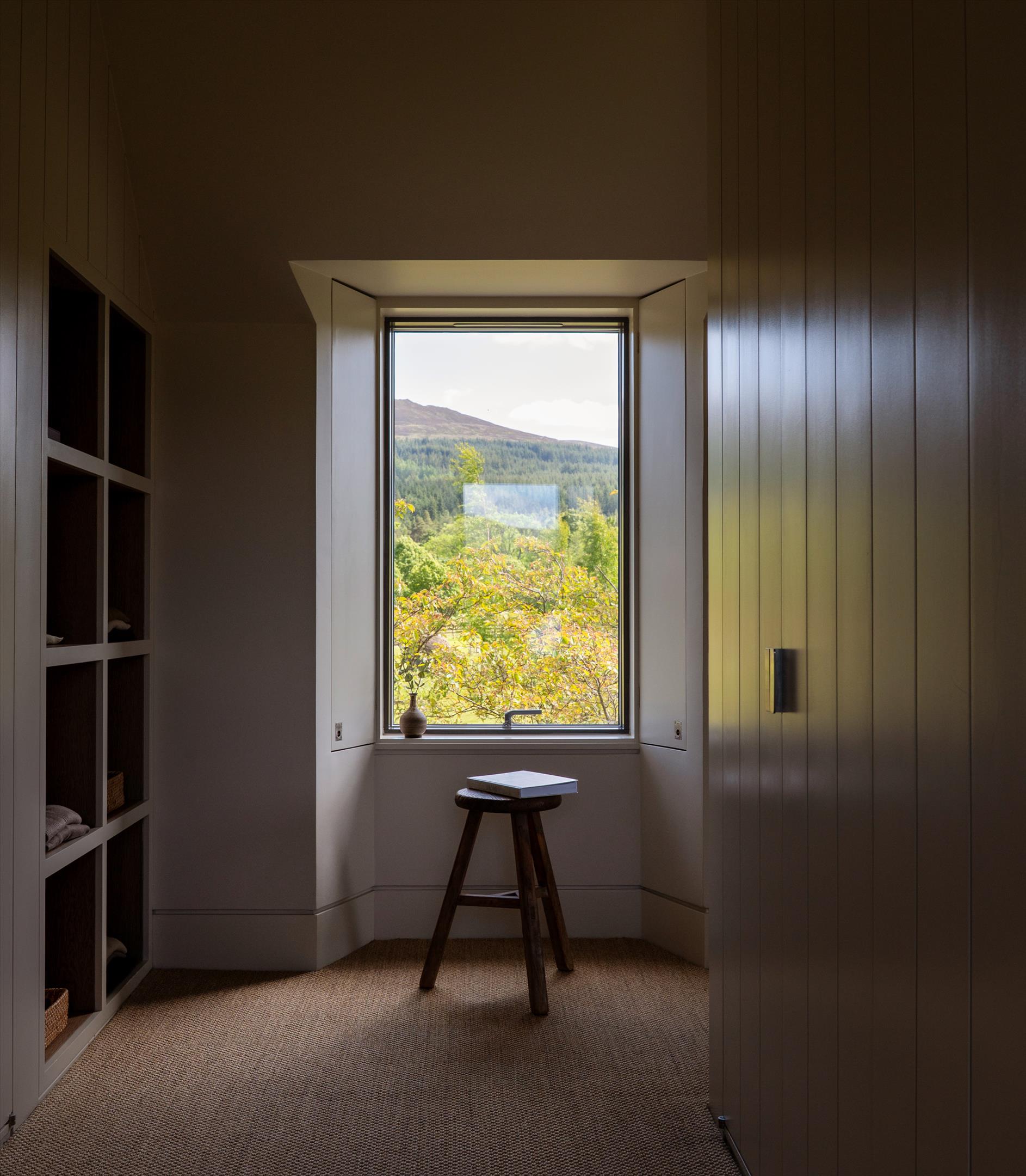 Carie is accessed via a private tree-lined drive along the Carie Burn, leading to a gravelled approach through the Steading and hay barn. Completed in 2014, the house offers over 8,870 ft² of open-plan accommodation with spectacular views over Loch Rannoch and the Southern Rannoch Mountains. Built to an exceptional standard, the home is arranged around a cobbled courtyard and includes a conjoined two-storey stone cottage. Velfac triple glazing, underfloor gas heating, Mode LED lighting, and a Sonos sound system ensure comfort and efficiency.