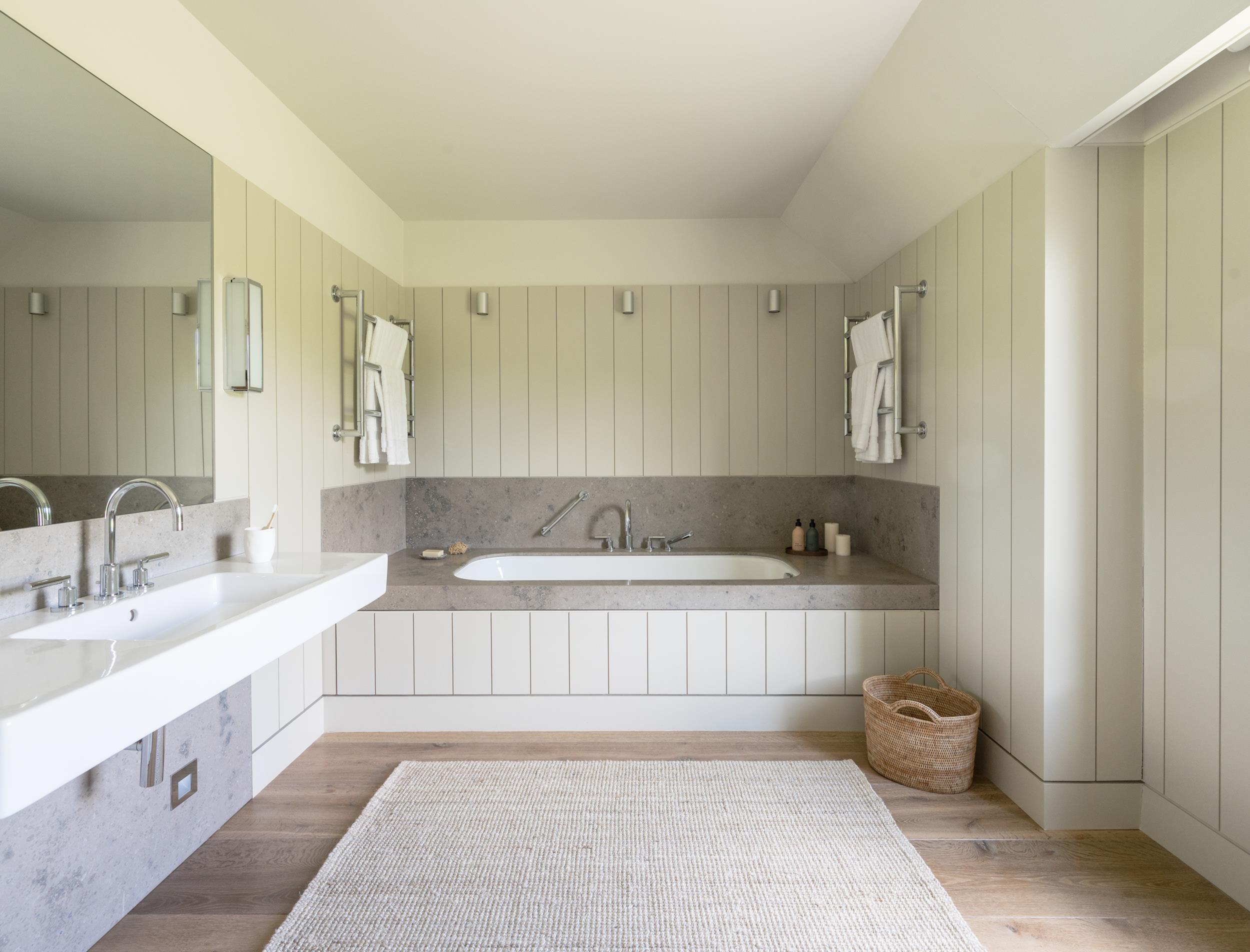 Bathrooms and the boot room feature Caithness stone floors, floating sinks, foot sensor lighting, Dombracht fittings, and baths with stone surrounds. The plant room houses three gas Valliant boilers, two hot water tanks, and system controls. A ladder leads to a floored attic. Additional rooms include a comms room, a laundry with twin Miele machines and dryers, and a spacious boot room with storage, Belfast sink, and guest WC.