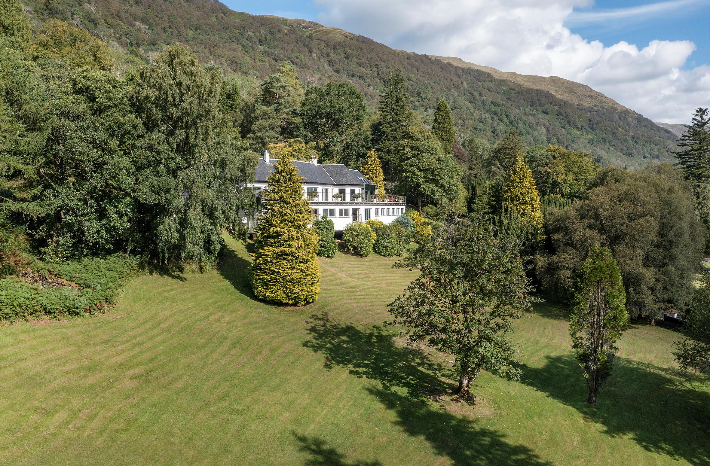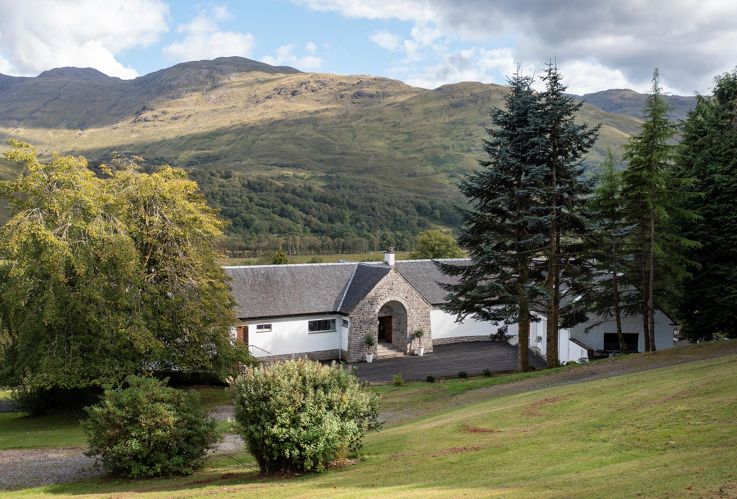 Invercreran House occupies an elevated, south-facing position in Glen Creran, commanding some of the most striking mountain views in Scotland, including Beinn Sgulaird and Beinn Fhionnlaidh. The residence sits on the edge of mature gardens and woodland, supported by a cantilever structure to complement the hillside terrain. Appin (10 minute drive) and Port Appin (8 miles) are the nearest villages, collectively comprising a small shop which provides everyday requirements as well as a doctor's surgery, two churches, a local primary school, two hotels, a pub and a garage. Barcaldine (6 miles) has a marina and a primary school. The town of Oban (30 minutes drive), also known as the 'Gateway to the Isles' and Scotland's seafood capital, has a more extensive range of services including supermarkets, a Marks and Spencer food hall, restaurants, primary and secondary schooling and a hospital. The ferry ports have regular services to the Inner Hebridean islands including Mull, Iona and the Outer