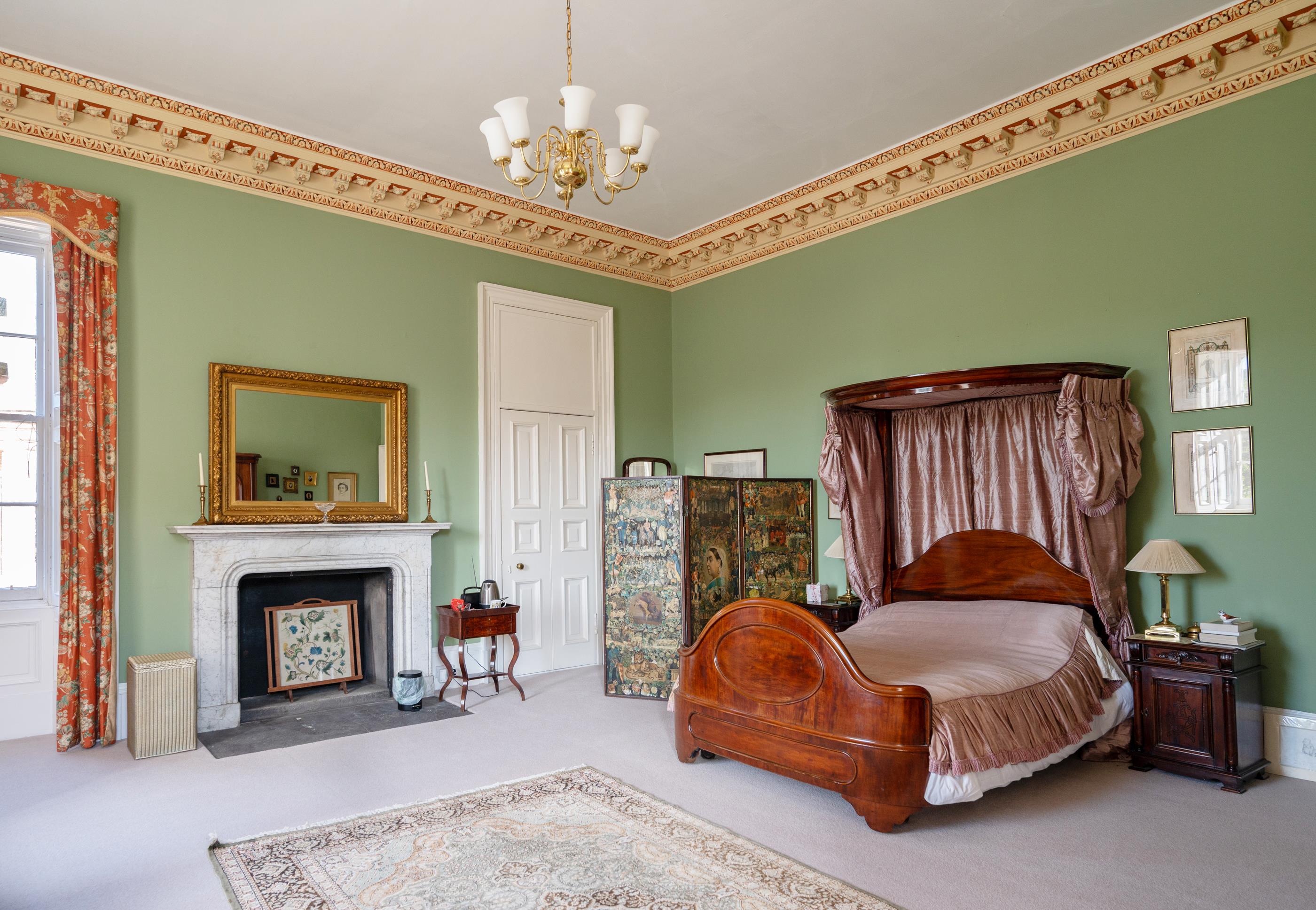 Beyond the formal reception rooms lies the private chapel, with its kitchenette and small dining room. The spacious main kitchen, with its adjacent butler's pantry, is conveniently situated close to the main dining room and provides easy access to the rear service entrance. The principal staircase is a broad turnpike stair rising from the gallery to the first floor, with further staircases rising to the second floor within the entrance tower and separately to the second, third, and fourth floors within the main tower. The first floor contains twelve bedrooms and six bathrooms, most of which have a predominantly south-facing aspect overlooking the gardens and parklands. There are four additional bedrooms with two bathrooms on the second floor, attractively proportioned and well suited to family life. There is an array of secondary accommodation at the lower ground floor and basement/courtyard levels, including the derelict former servants' hall, storerooms, and additional domestic quarters arranged around the service courtyard.