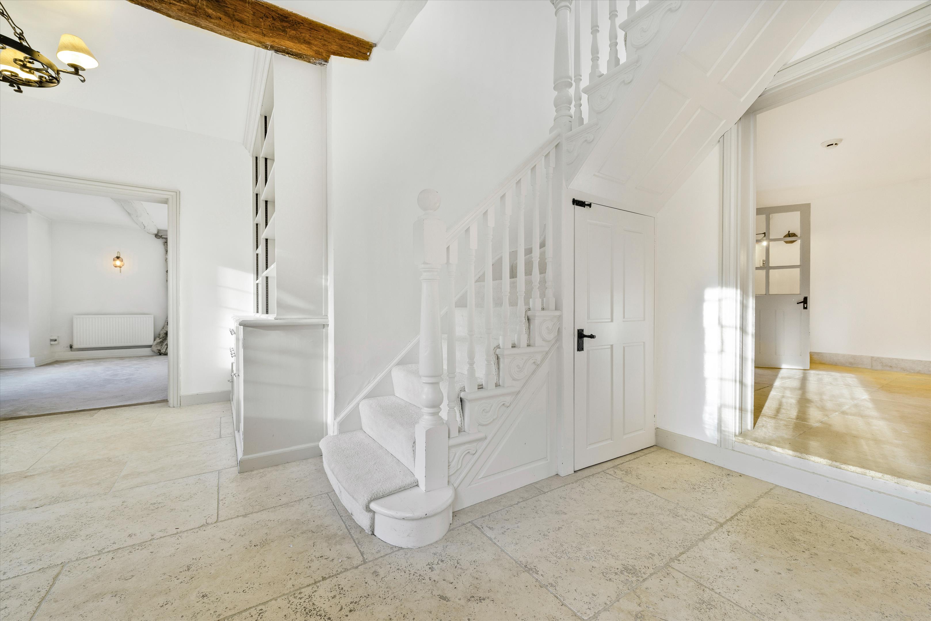 The accommodation throughout is generous and offers huge flexibility. Of particular note are the beautiful triple aspect drawing room, country style kitchen enjoying a dual aspect with tall arched window and part vaulted beamed ceilings, dual aspect dining room with stone fireplace and the Library overlooking the gardens to the front. The are many other rooms on the ground floor which could be used for a variety of purposes.
