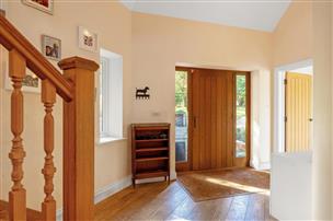 Clover House is approached through electric wooden gates onto a gravel driveway, providing ample parking in addition to the double garage. To the rear, the terrace enjoys far-reaching views across the gardens and open countryside. The gardens and grounds extend to approximately 4.35 acres, combining formal lawns with paddock land interspersed with specimen trees, offering a peaceful and private setting.
