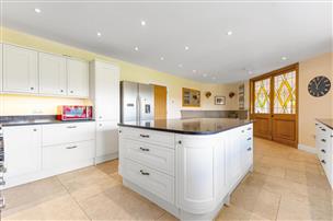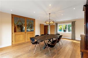 Upon entering the ground floor you are welcomed by a spacious entrance hall. This leads onto four reception rooms, including a superb dual-aspect drawing room with bi-fold doors opening onto a spectacular terrace and a stunning fireplace housing a log burner. The kitchen/breakfast room forms the heart of the home, boasting a large central island and a comprehensive range of sleek, high-quality units. Next to the kitchen is the large formal dining room, providing the perfect space for entertaining. The family room, complete with solid oak sliding doors, offers flexibility to divide into two separate spaces if desired, which could be utilised as a home office, playroom or extra bedrooms downstairs. A spacious utility room and a shower room complete the ground floor accommodation.