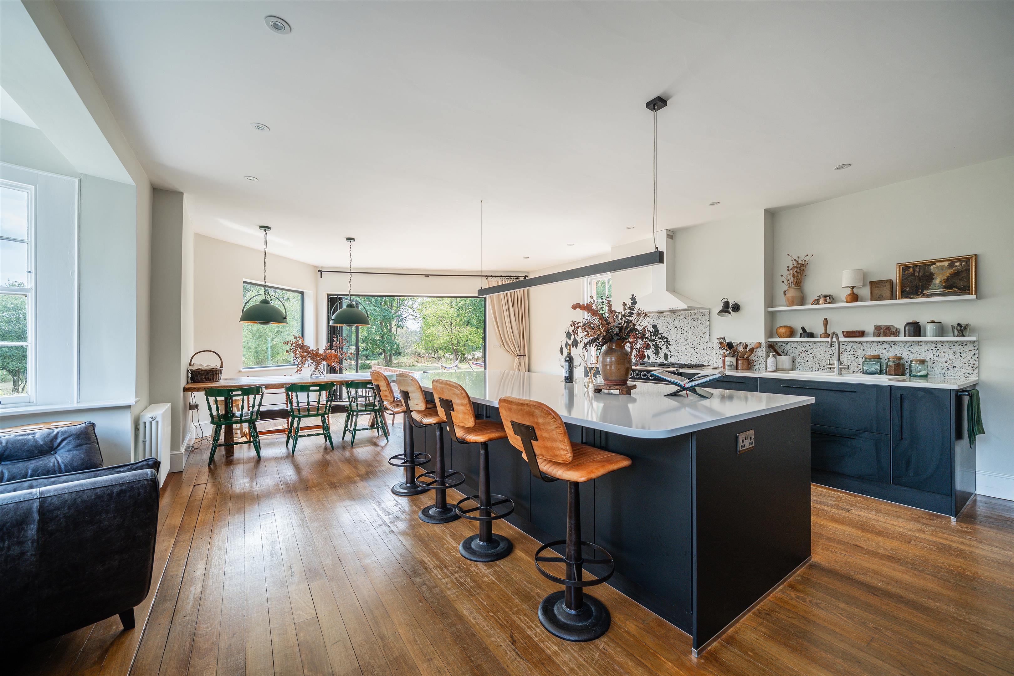 Set well back off Forest Road you approach the main house along a secluded and private driveway. Entering the house, you are met with a stunning entrance hall from which all the reception rooms are accessed. The three reception rooms - Drawing Room, Family Room and Study have retained their period charm whilst the modern open plan kitchen and dining space presents as the real Hub of the home opening up onto an original flagstone terrace. Period features have been kept throughout with particular note to the fireplaces and Douglas Fir doors.