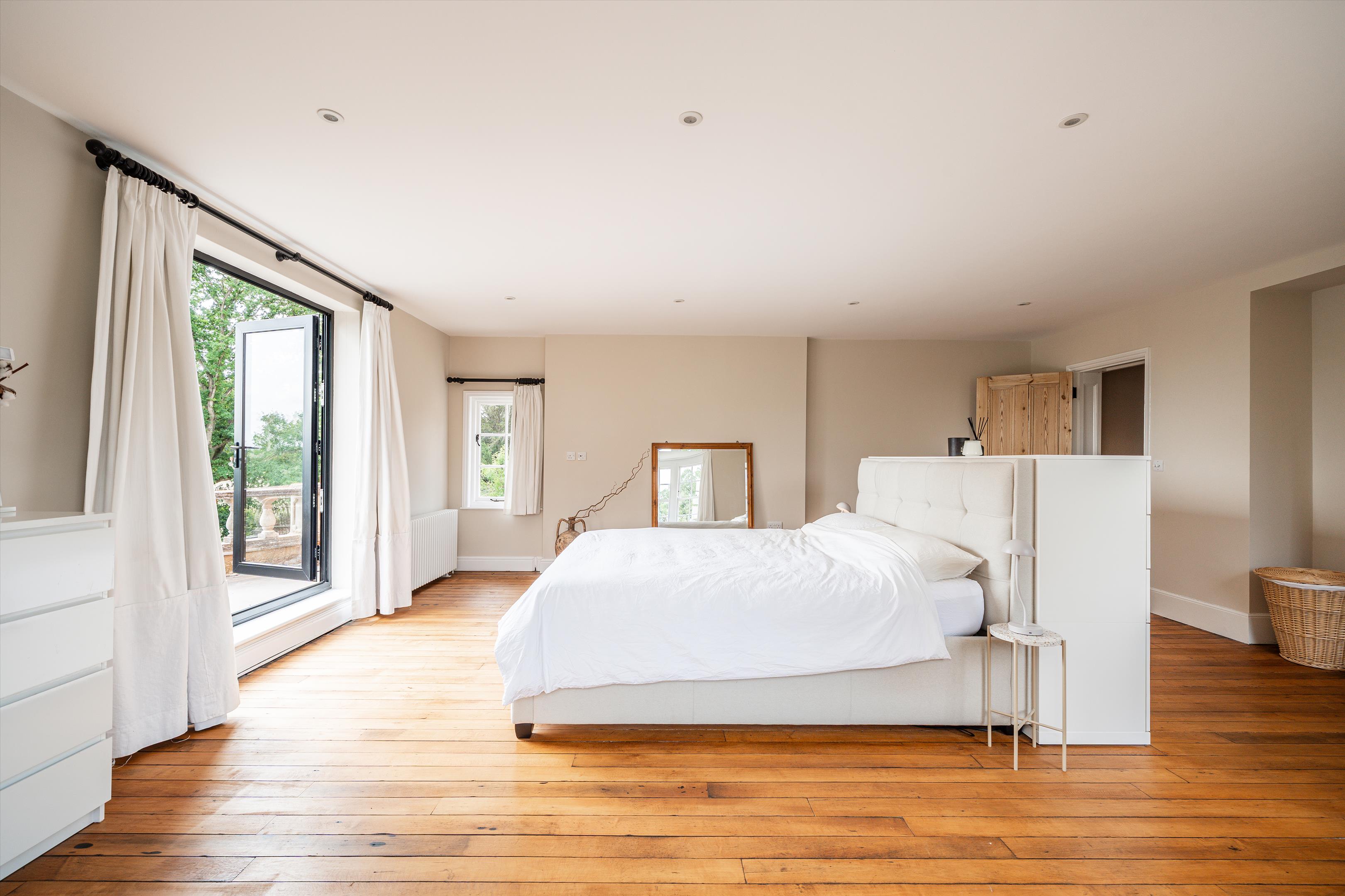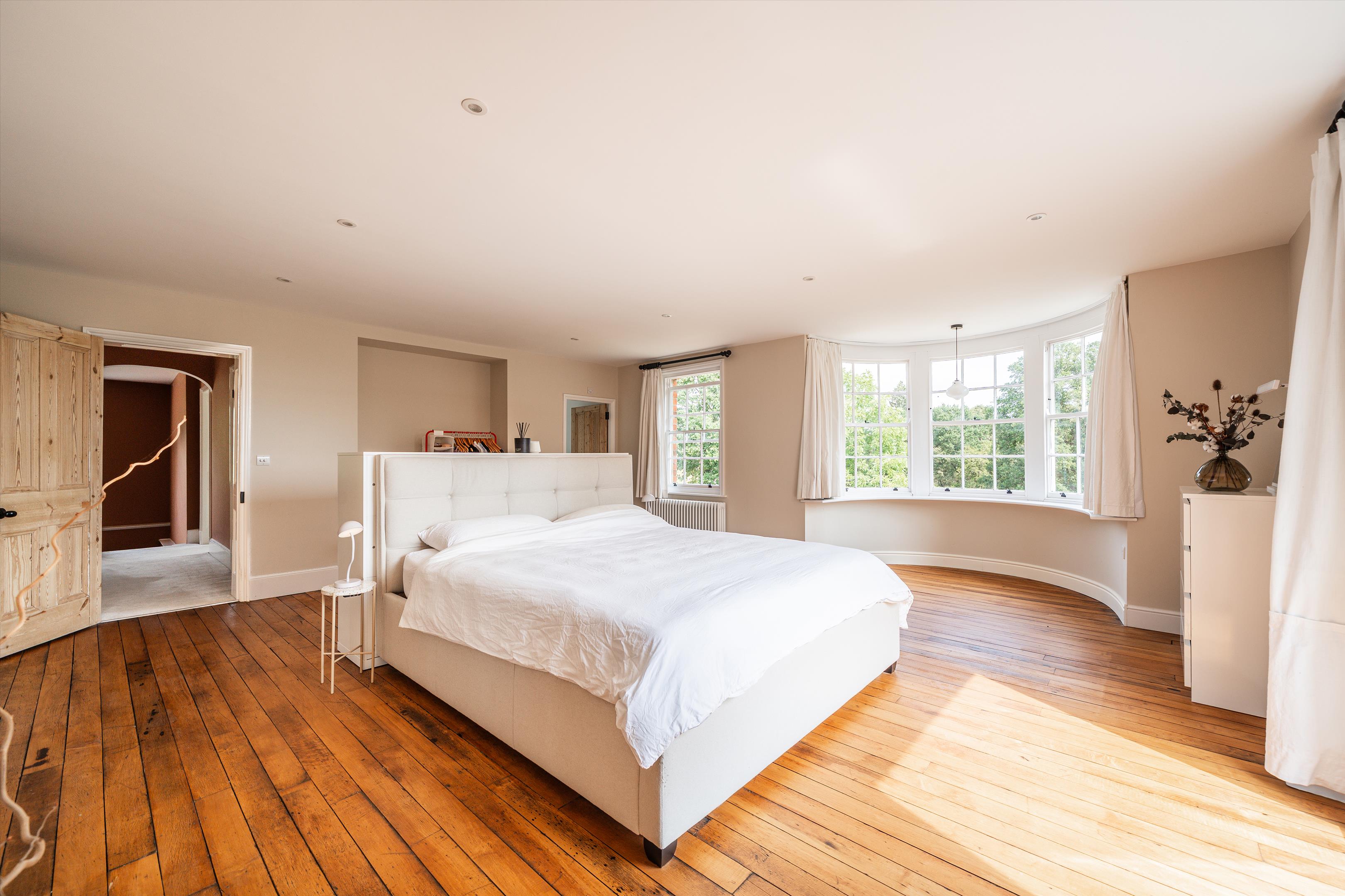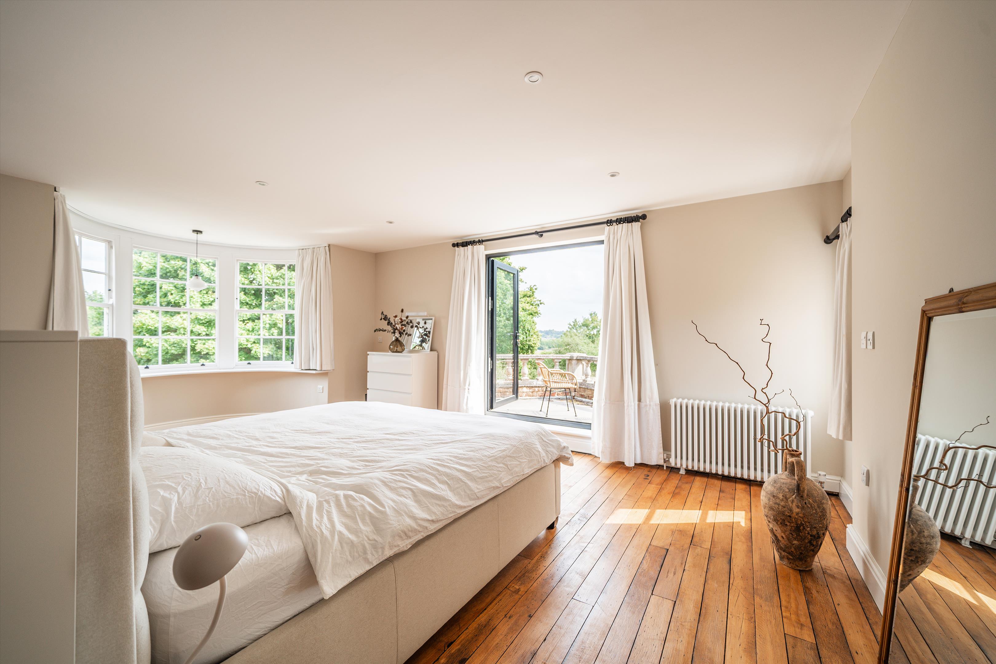 Heading upstairs there are four bedrooms, The Principal, being en-suite with a private walk-out balcony taking in the panoramic views. There is a spacious family bathroom serving the three other bedrooms. The bathrooms are newly fitted with Critall finishes. Two of these bedrooms benefit from dressing rooms, one of which could be converted back to the original fifth bedroom.