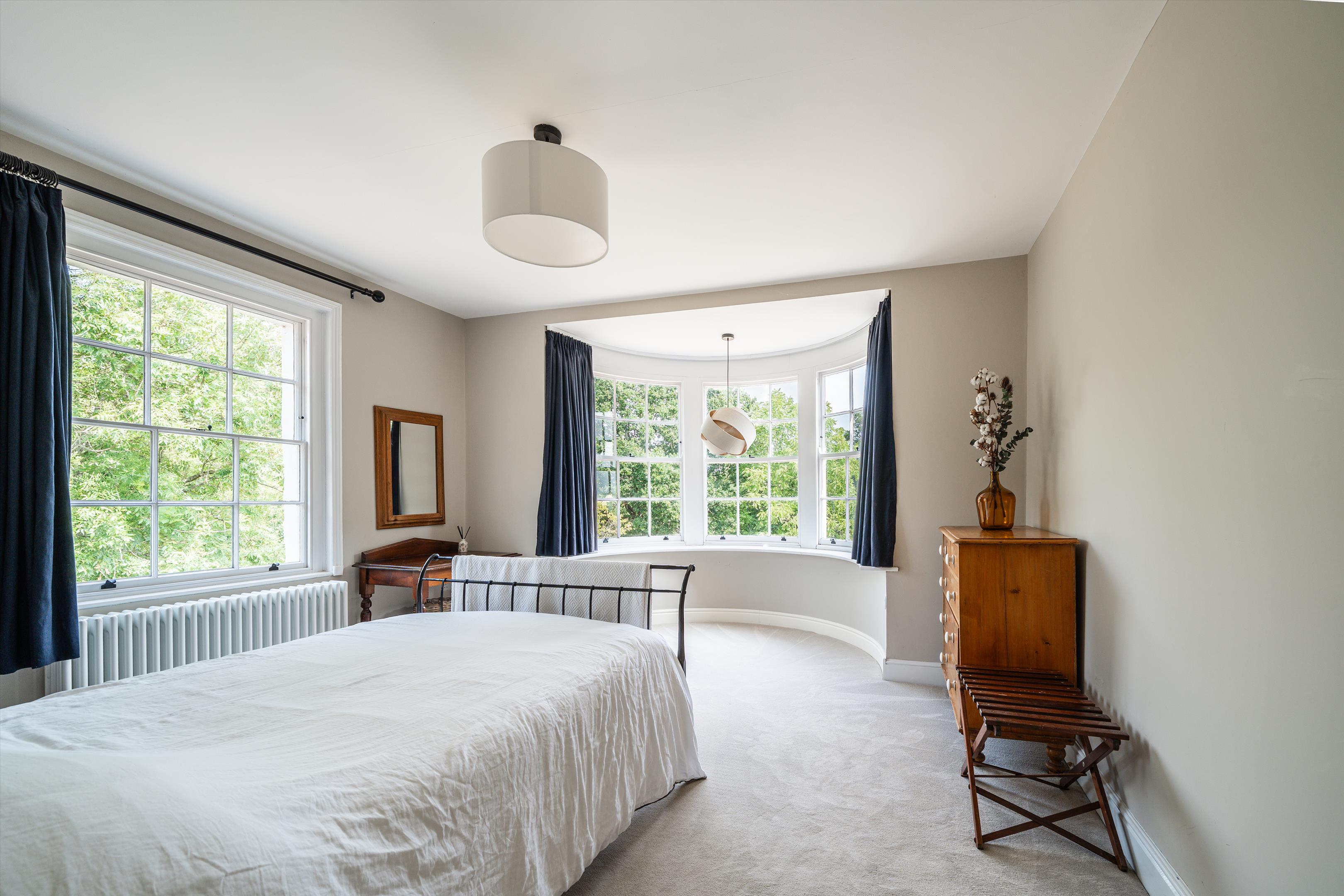 Heading upstairs there are four bedrooms, The Principal, being en-suite with a private walk-out balcony taking in the panoramic views. There is a spacious family bathroom serving the three other bedrooms. The bathrooms are newly fitted with Critall finishes. Two of these bedrooms benefit from dressing rooms, one of which could be converted back to the original fifth bedroom.