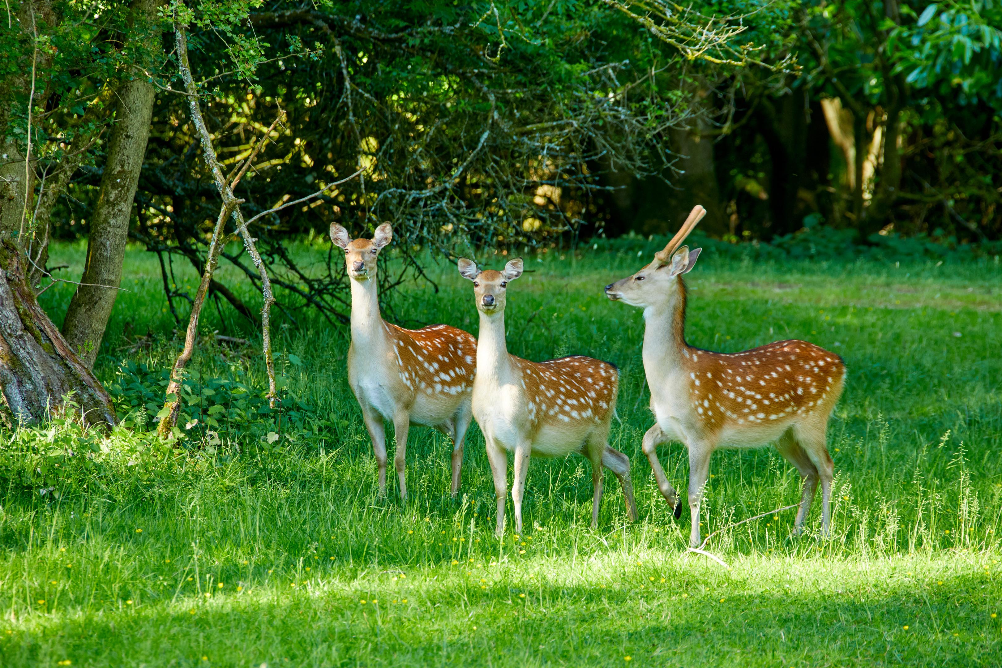 The Manor sits in wonderful gardens and grounds. The main lawn runs to the south of the house, towards the woodland. Within this is a fenced deer park with a herd of Sika deer. Near the lawn is a hard surface tennis court, whilst adjacent to the stable yard is a lovely walled garden.