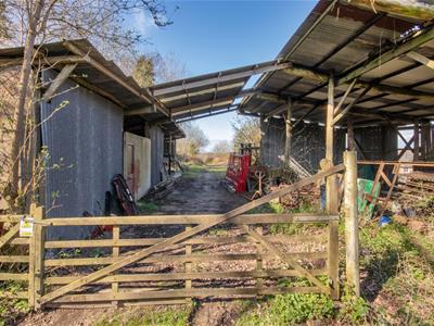 Yard with a range of pole -framed barns (in need of renovation), and adjoining paddocks. Extending in all to approximately 9.65 acres (3.8 ha).