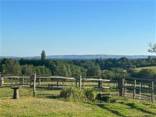 The equestrian facilities include a rubber and sand manège, hay barn, two field shelters and parking for horse box.