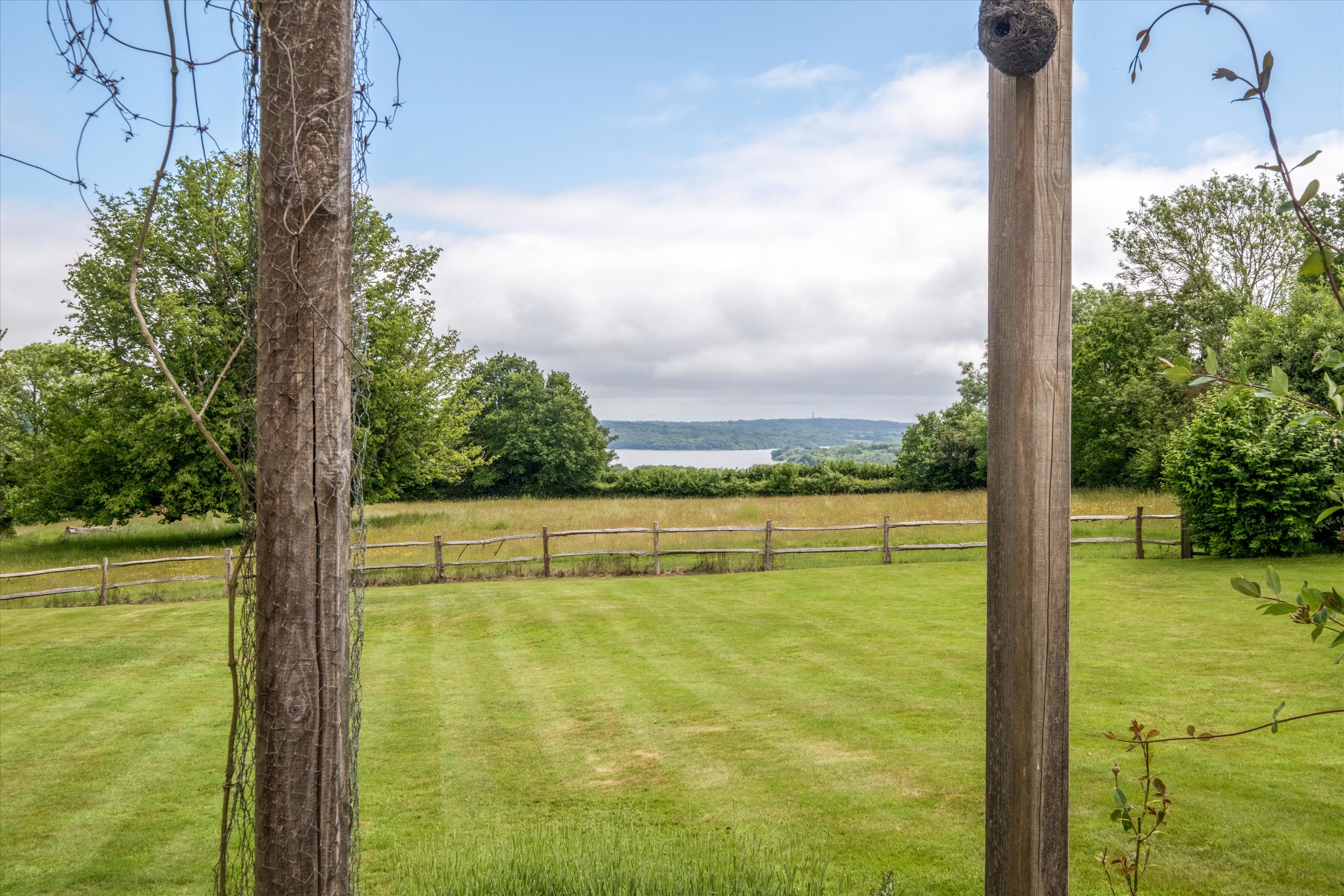 Outside, the house sits in an elevated position with uninterrupted views over farmland towards Bewl Water, the largest reservoir in the South East. The property is approached via an electronically operated five bar gated entrance over a long, tree-lined sweeping private driveway leading to the house and detached double garage. To the front there is large pebble drive providing ample parking for numerous cars.