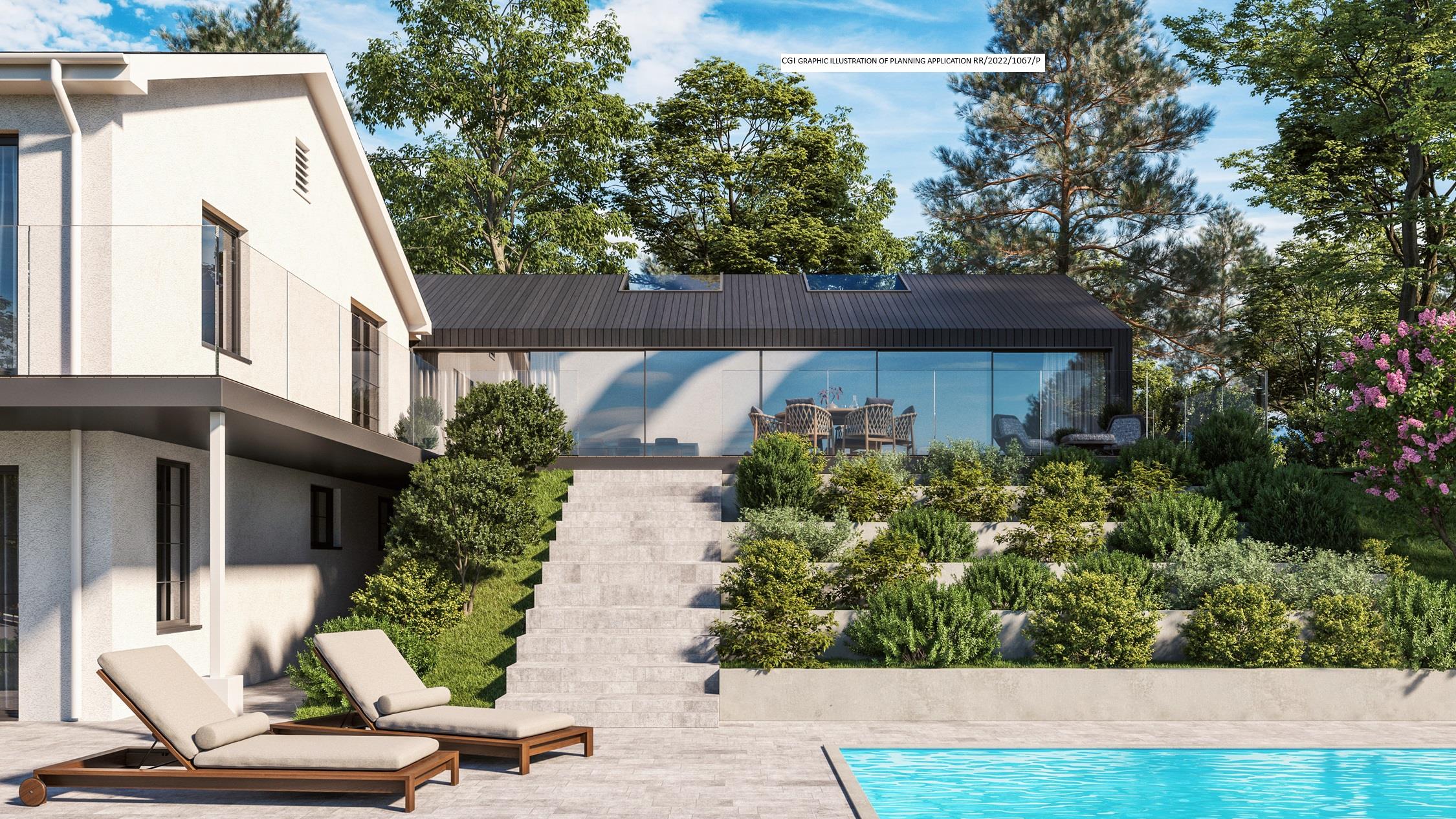 The property benefits from full planning permission (ref: RR/2022/1067/P) to extend the existing house and planning permission is currently being sought for an additional detached family home on the plot.