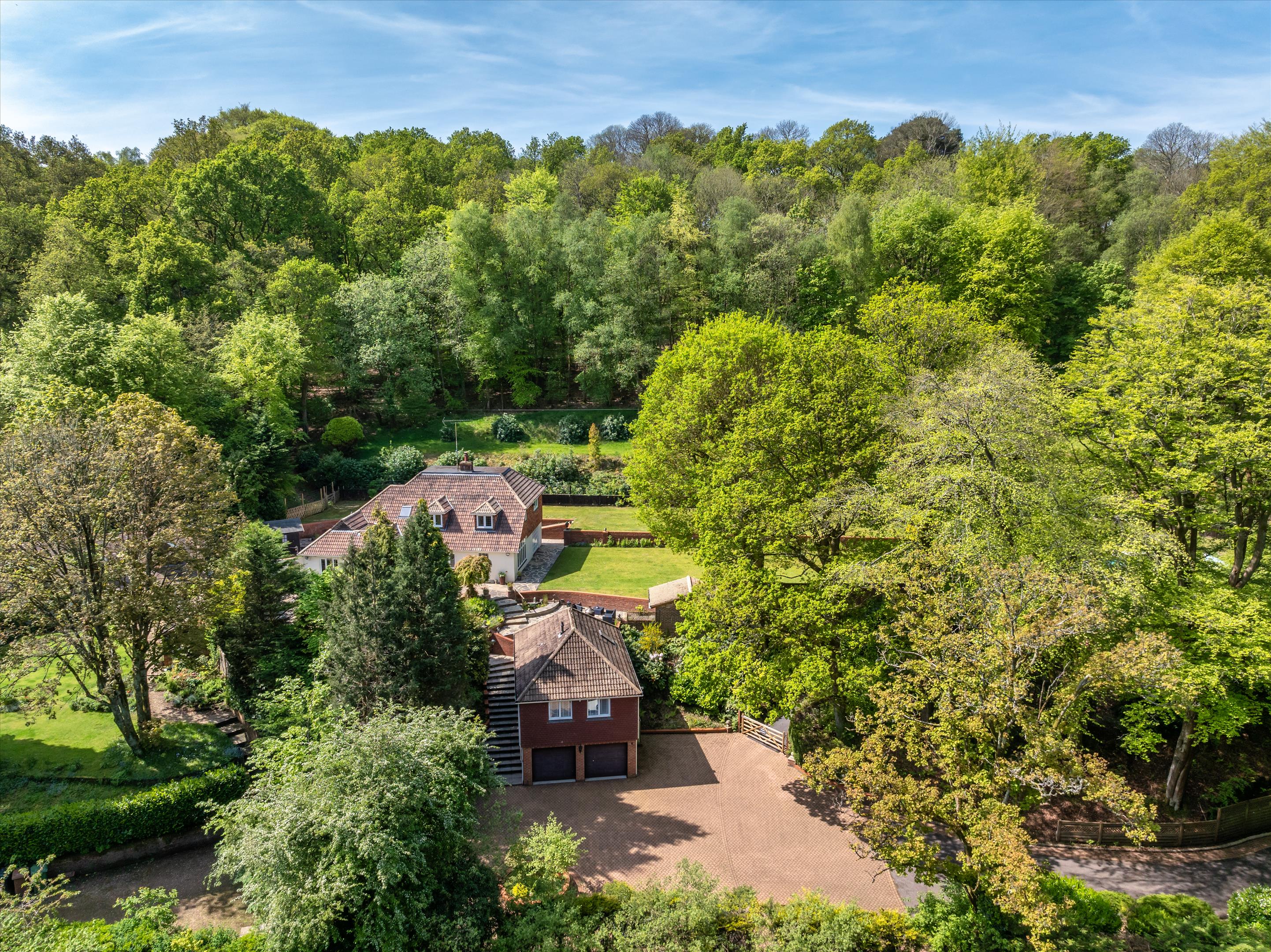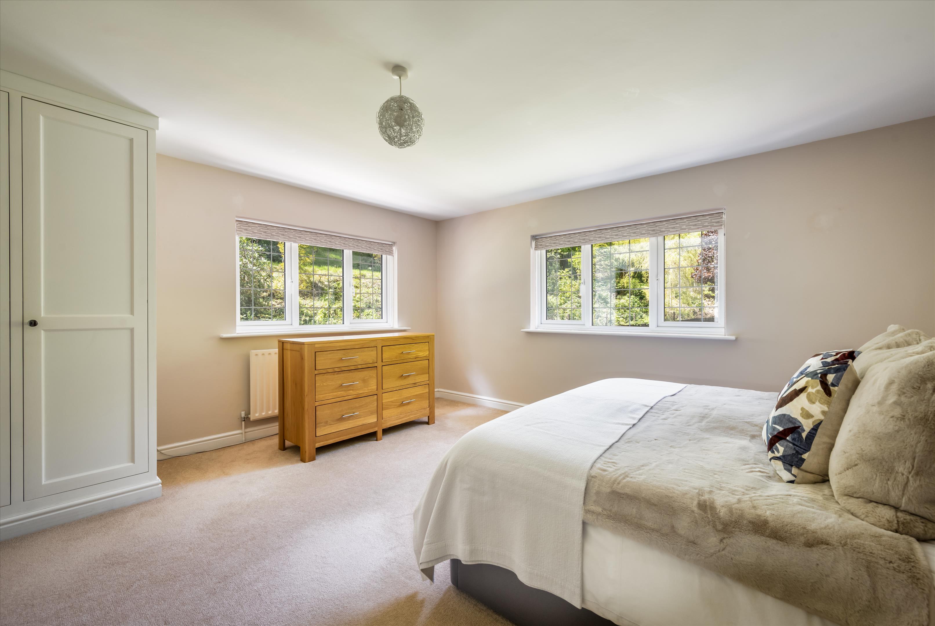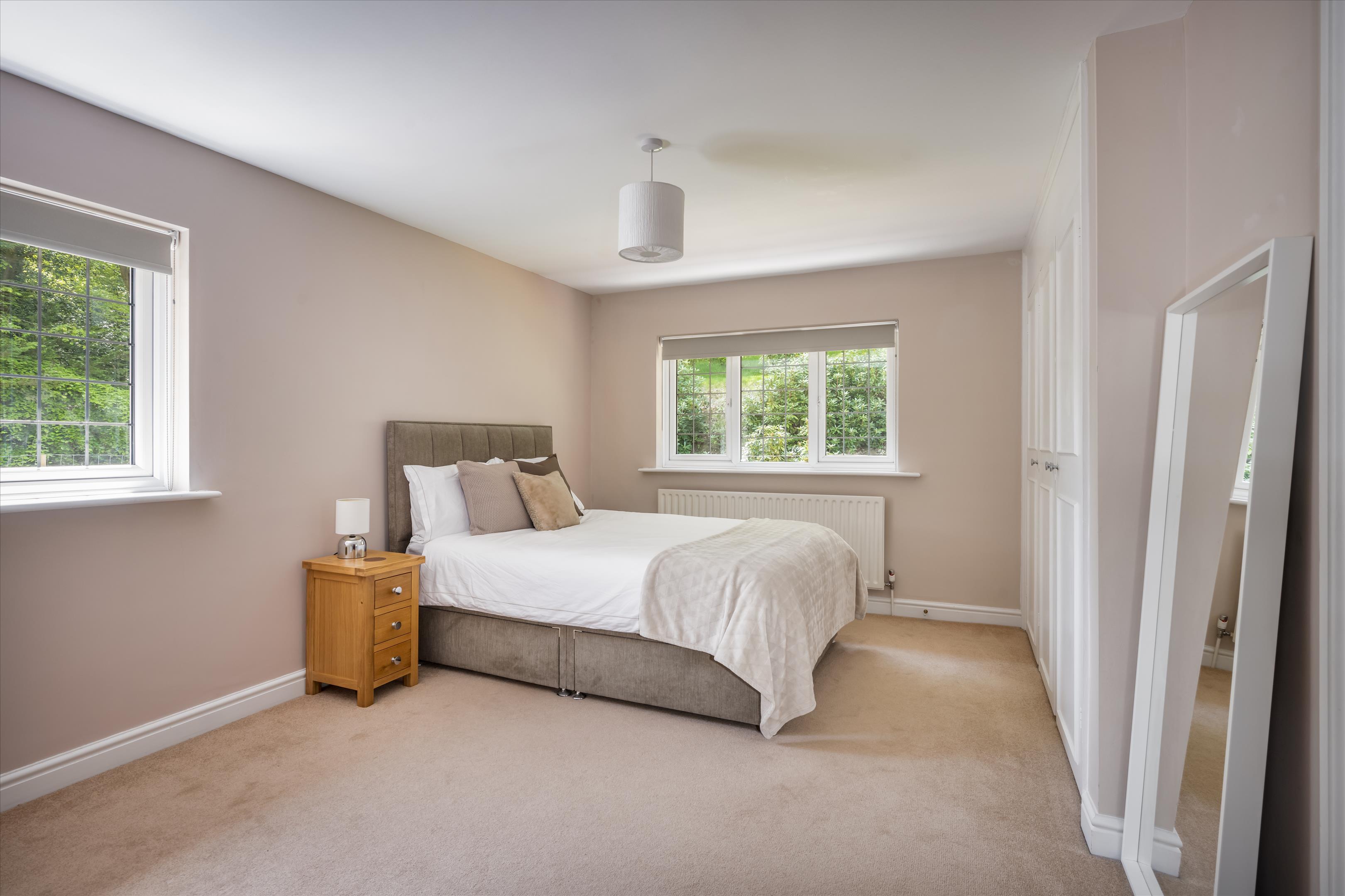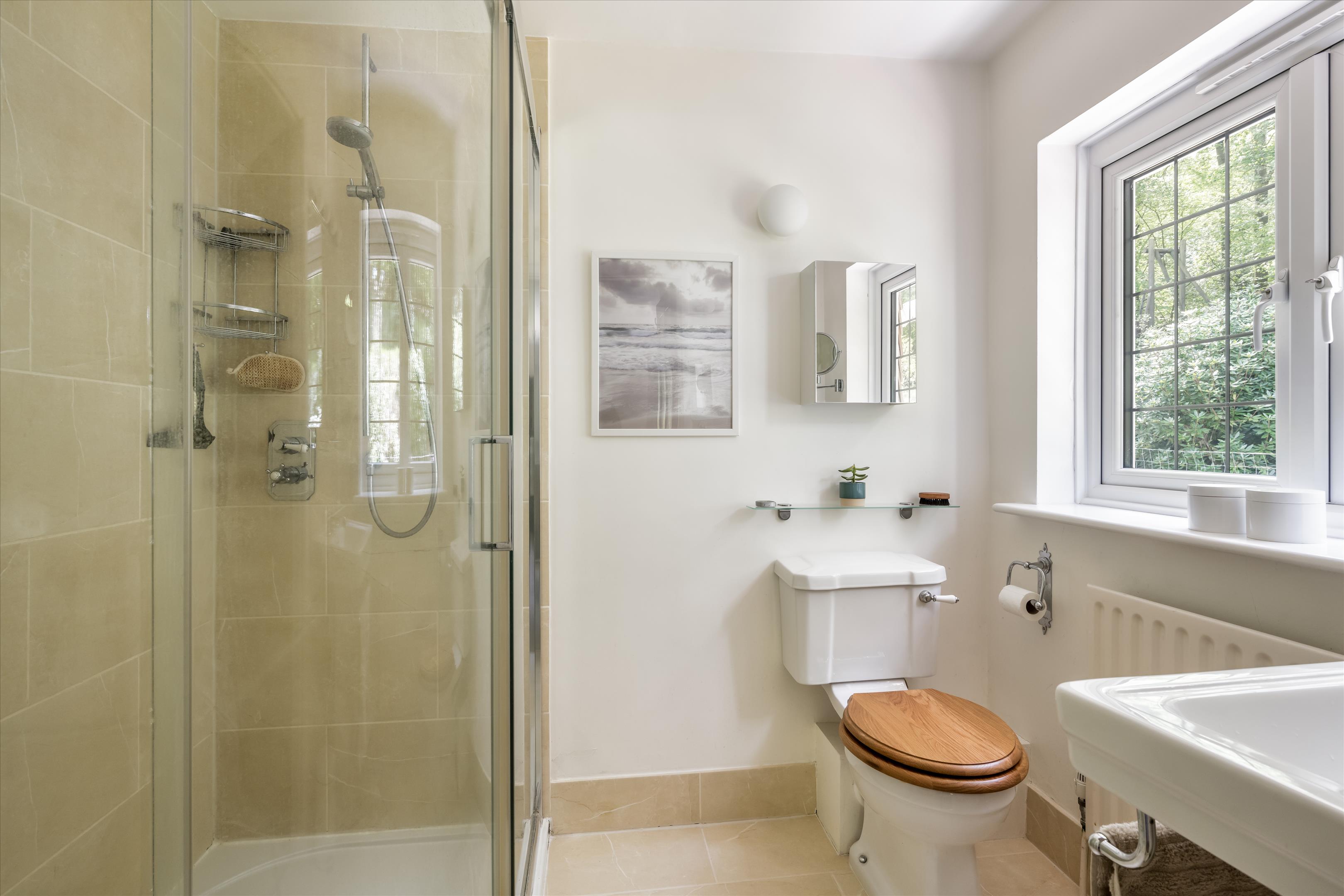 To the first floor are four bedrooms and a family bathroom; the dual-aspect principal bedroom incorporates an en suite, and three further bedrooms (one with en suite). Bedroom three is currently used as a generous dressing room. All bedrooms benefit from built-in wardrobes and enjoy unique vistas over the surrounding gardens and woodland. The detached annexe, which features two bedrooms and a bathroom, further supports.