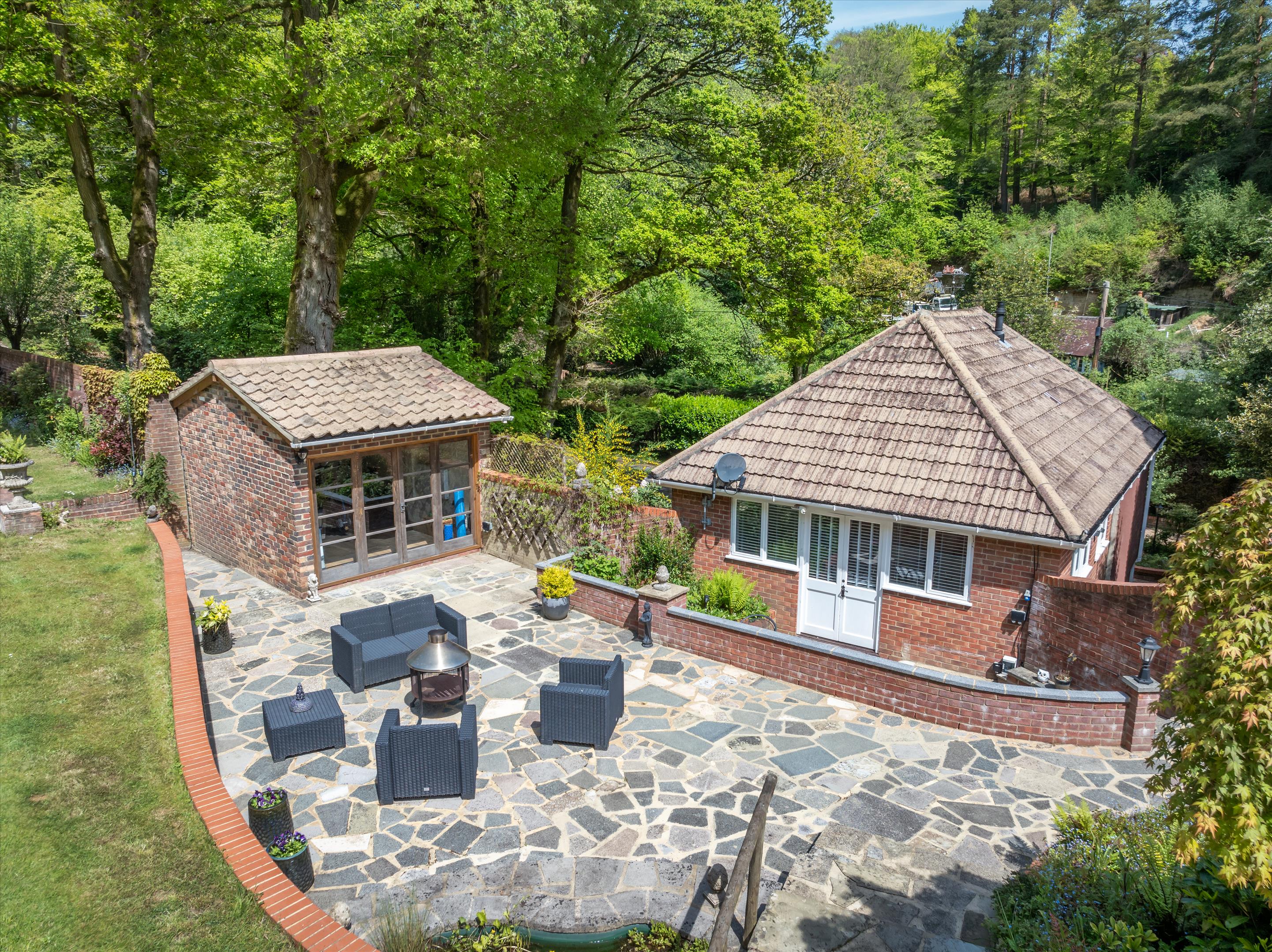 The Studio is located within Fullers Vale, a pretty and secluded stretch of woodland near the hamlet of Arford and Headley village. They provide two public houses, a beautiful church, a village green, an independent farm shop, and village stores. The nearby village of Grayshott offers a wealth of amenities for day-to-day needs, including a Sainsbury's, butcher, baker, post office, other shops and cafés. Further comprehensive shopping and facilities can be further found in the towns of Farnham, Haslemere, and Liphook, all within easy reach. Direct rail service (approx. 60 minutes) to London Waterloo from these three towns.