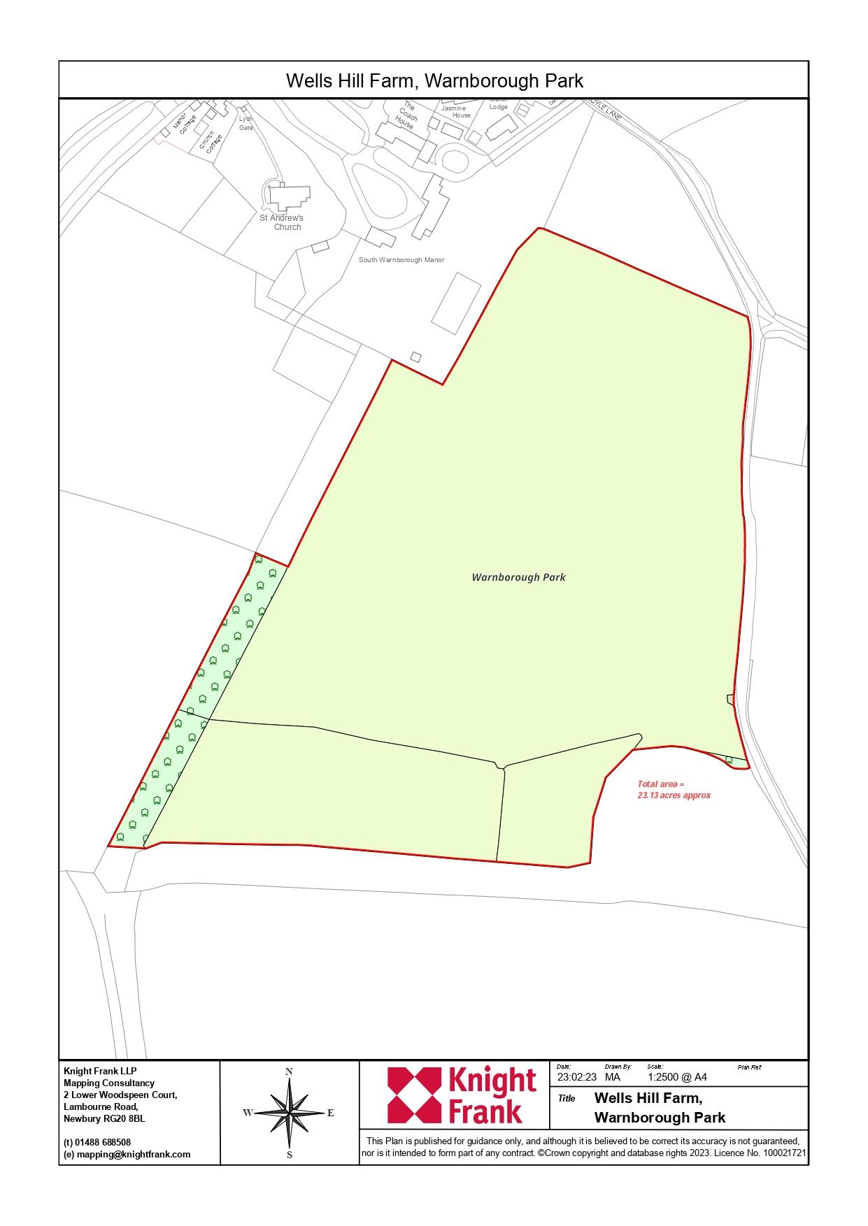 The land is situated to the south west of the village of South Warnborough and is a designated Conservation Area. The land has frontage on to Froyle Lane where there is vehicular access. The parkland is referred to within the Conservation Statement for the village as the 'historic park' and therefore everything within it is protected, including the trees. In all about 23.13 acres.