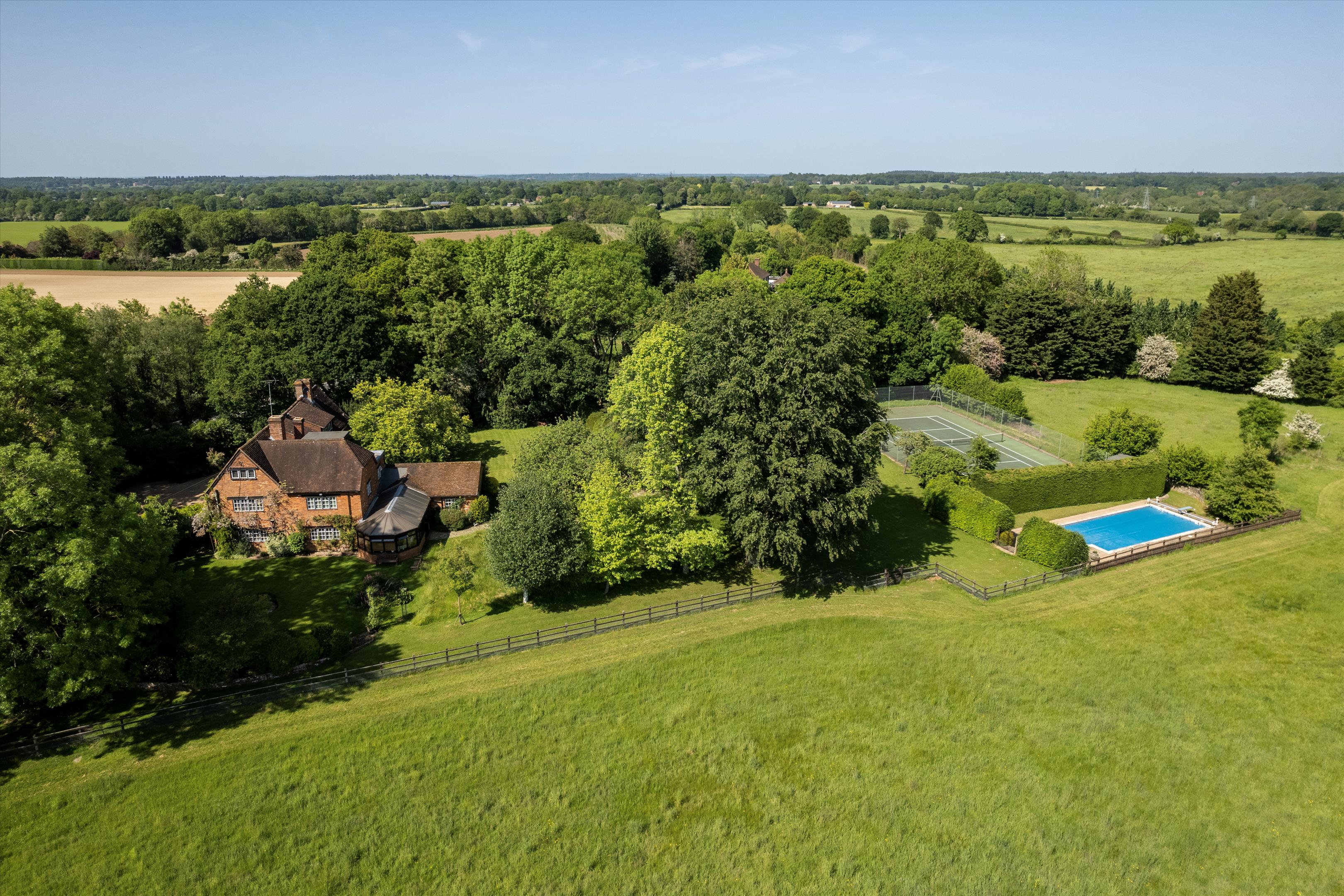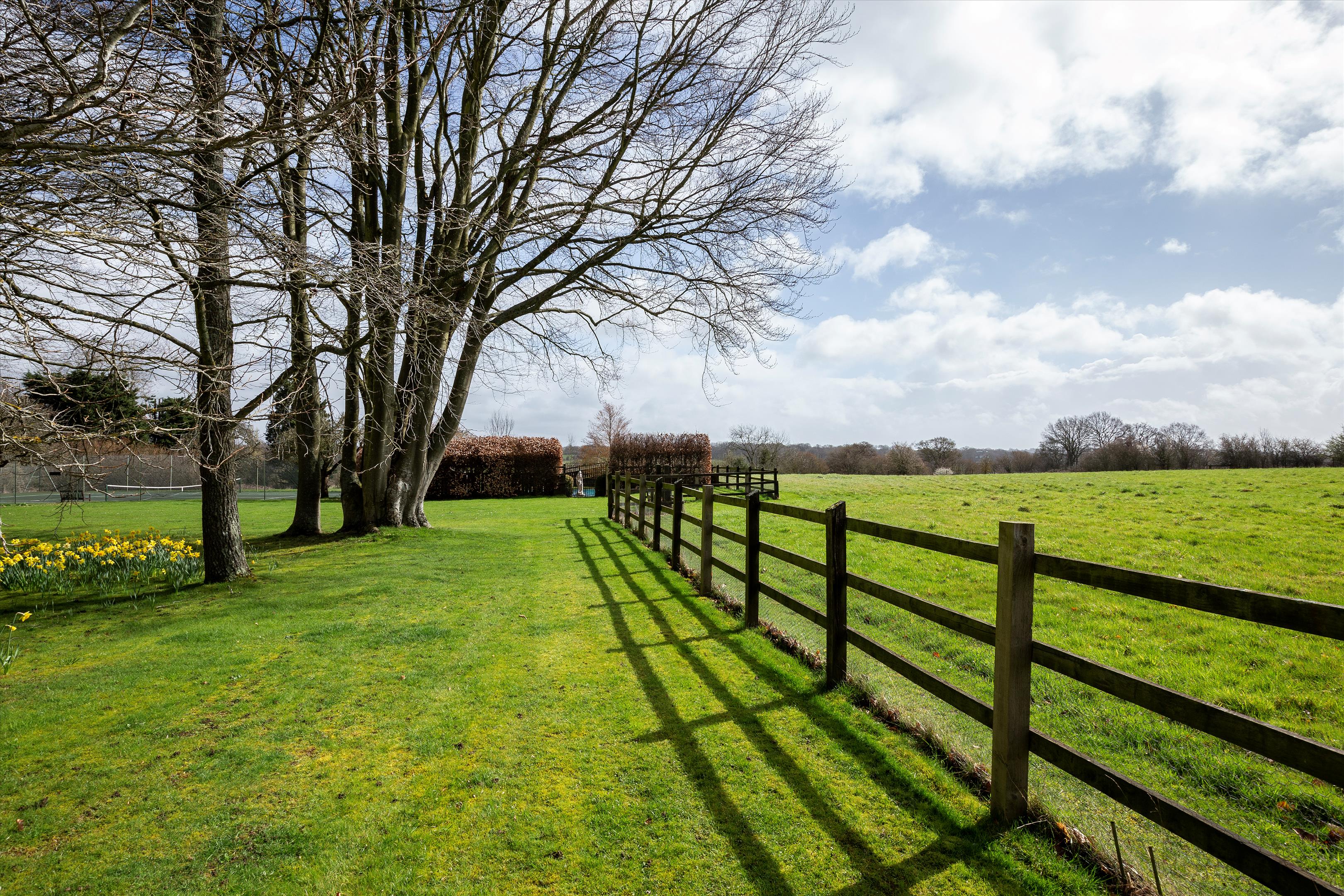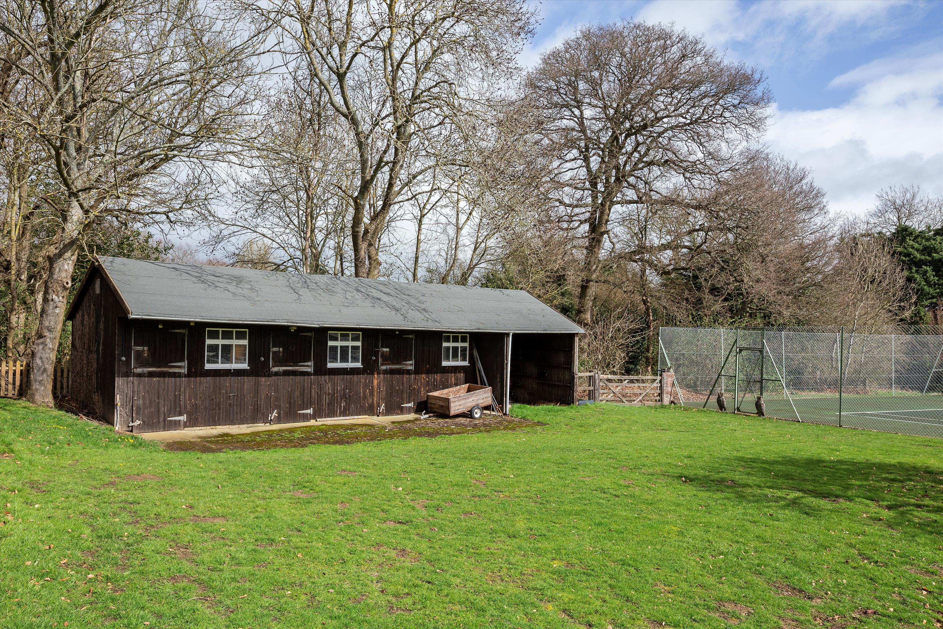 Make the most of the swimming pool extending 40 ft or tennis on the court. Horse owners benefit from a saddle room, three loose box-style stables and hay store, as well as a grazing area. The rear garden is manageable, mature beds and a sea of daffodils underneath an apple tree during the spring time, as well as an ancient magnolia and a wisteria. There's practicality with a large shed, wood store and double garage. Set at the end of a long driveway parking is provided for numerous cars in a useful turning area and within the garage.
