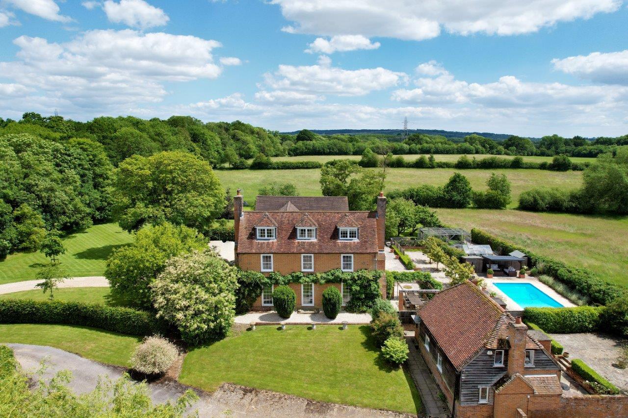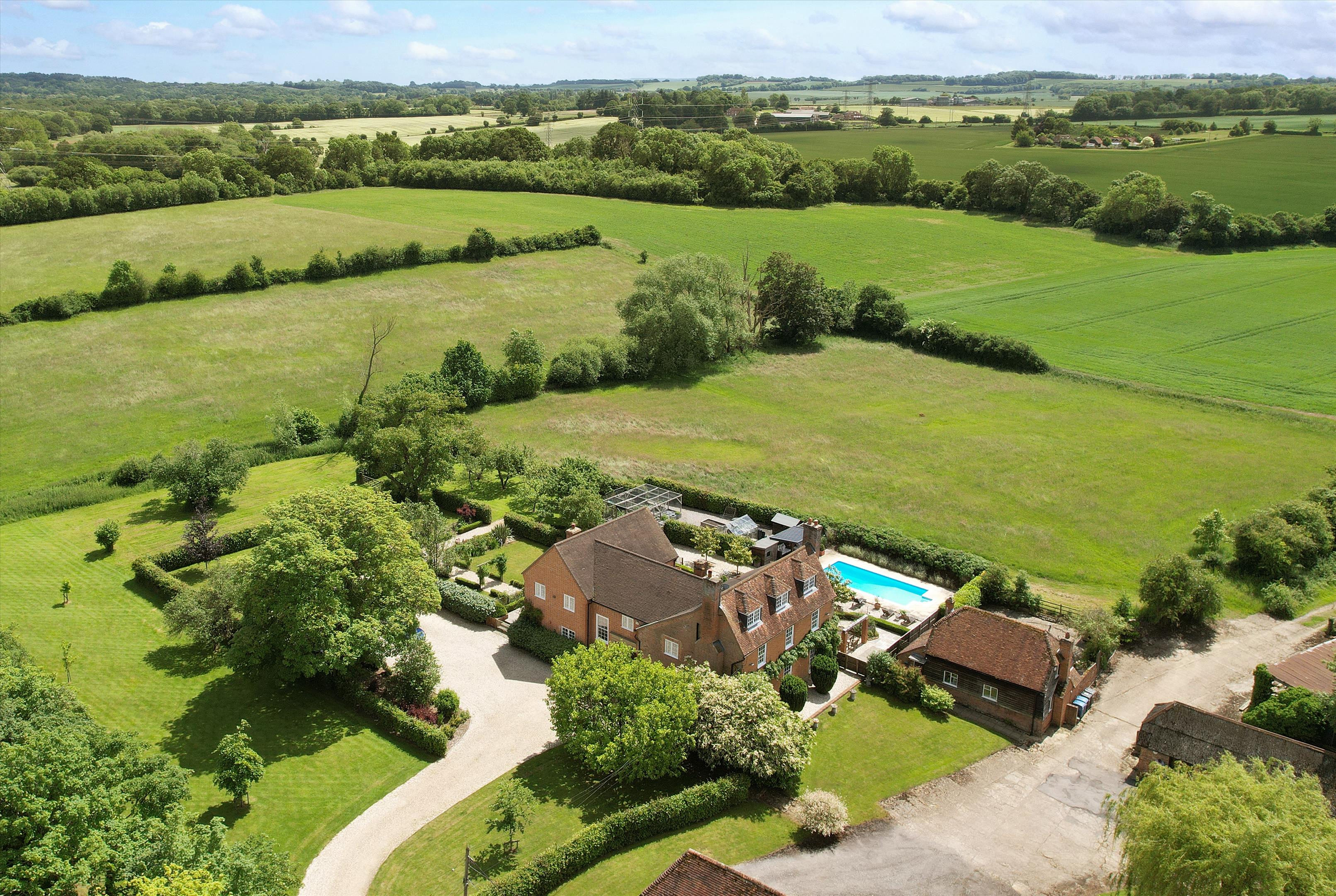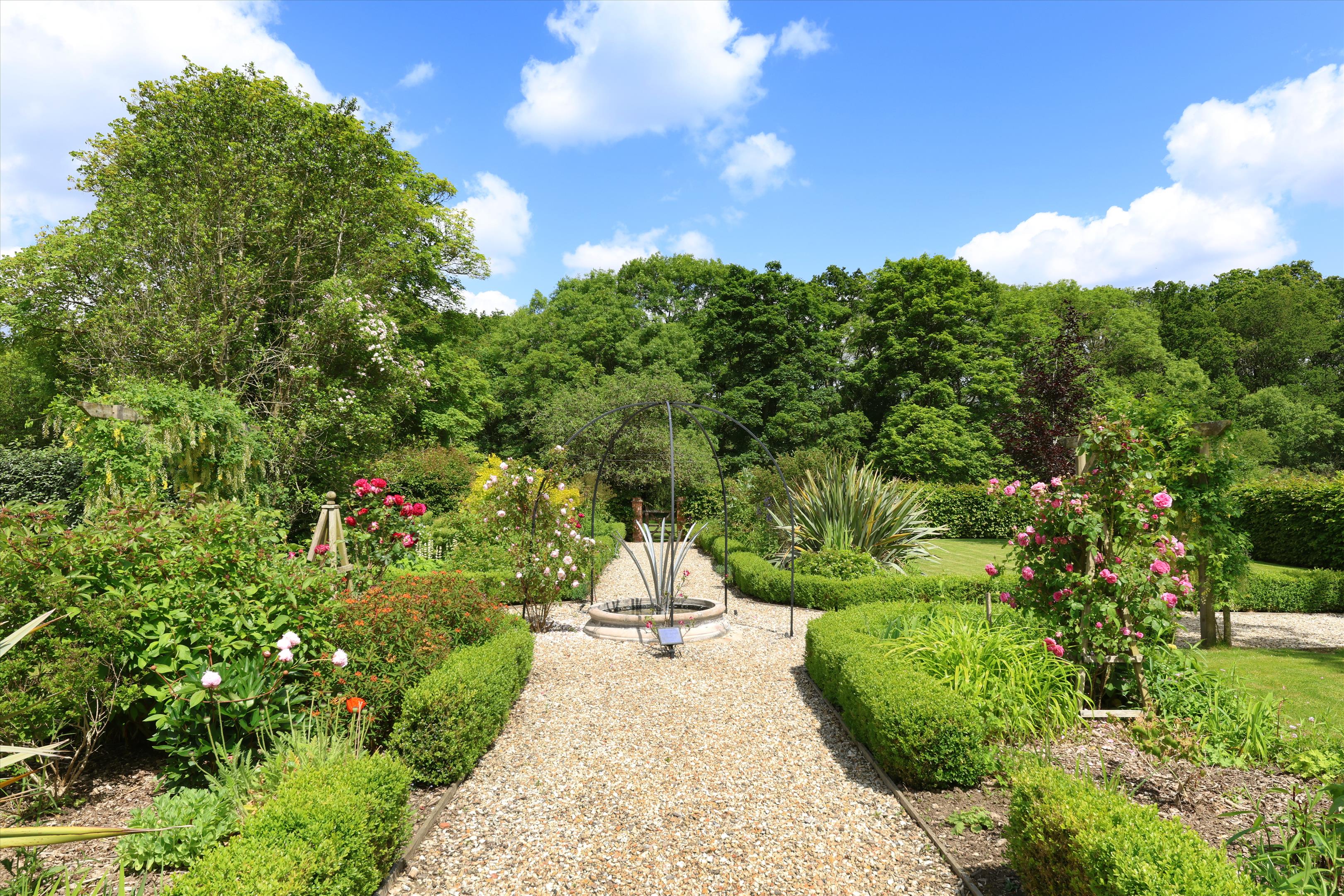 Outside, the house is approached via a long driveway leading to a gravelled area in front of the house for parking. The gardens have been carefully landscaped by our clients to offer areas of formal lawn with gravelled walkways through climbing plants over pergolas and mature well stocked floral beds. To the rear of the house is a south facing terrace, perfect for informal enjoyment with an outdoor pool with surrounding terrace and partially covered outside dining areas. There are paddocks to the east, south and west of the house creating over 9 acres of grounds in total.