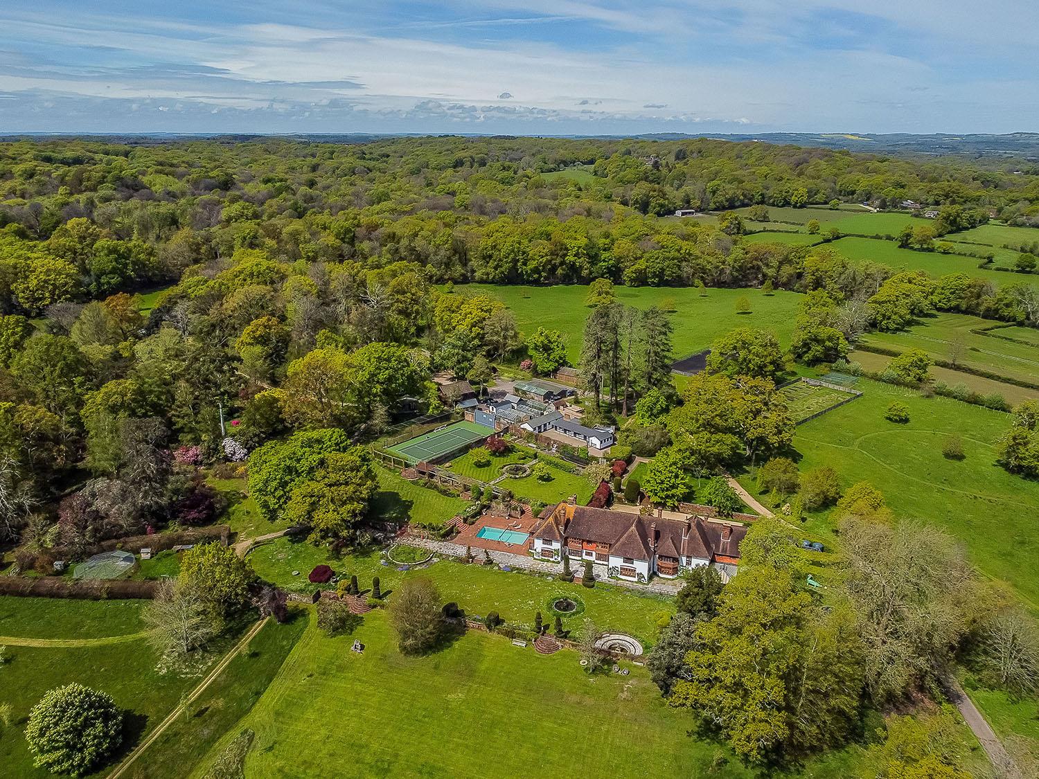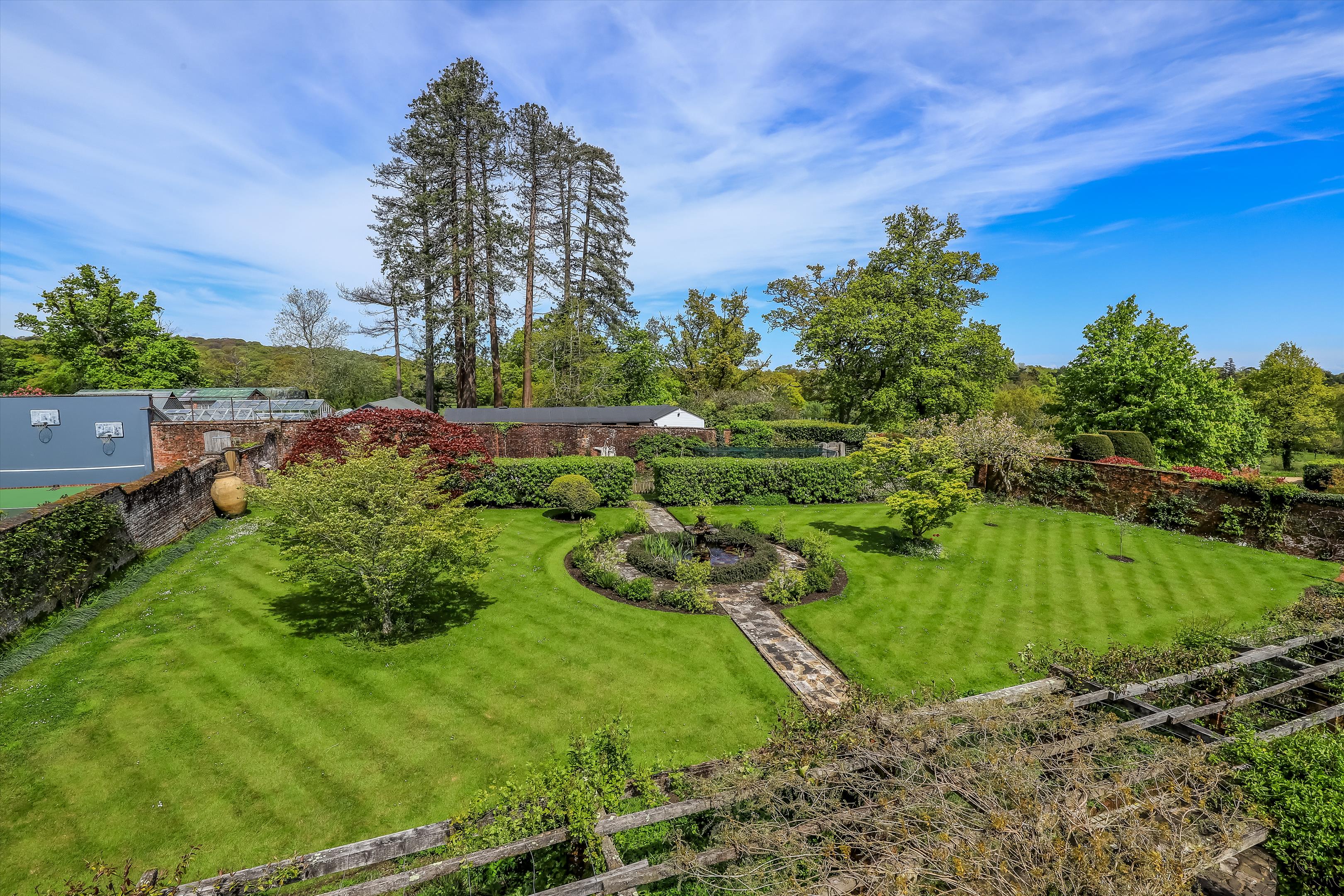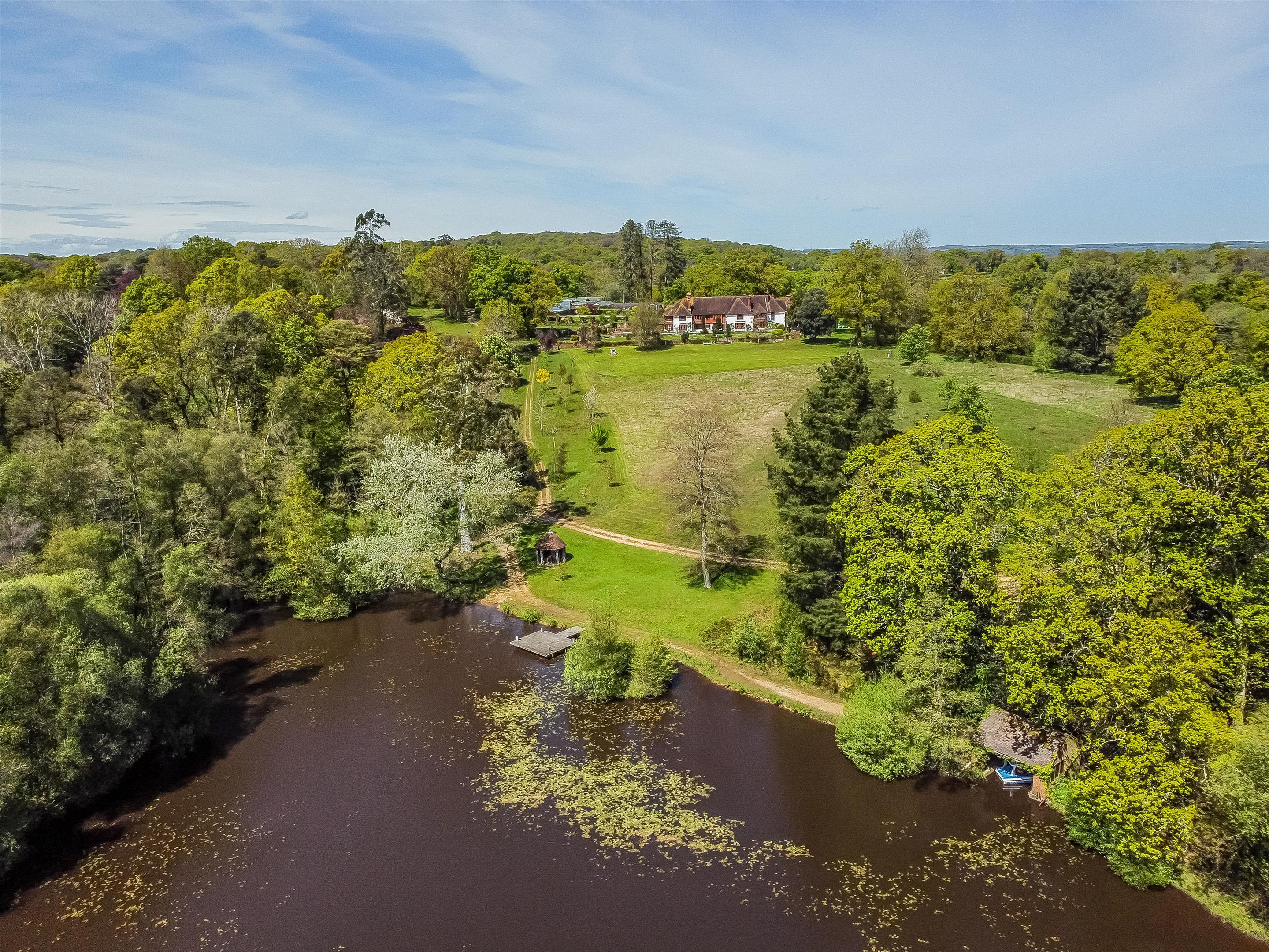 The formal rooms are beautifully proportioned and open onto a fabulous terrace with views over the grounds. The main reception rooms include a drawing room, dining room, sitting room, library, staff kitchen, breakfast room, kitchen and orangery. Upstairs is a master bedroom suite with 2 bedrooms, 2 dressing rooms and bathroom, 5 further en suite bedrooms, study/further bedroom and laundry room. The house stands on a wonderful terrace surrounded by a beautiful 10 acre garden which includes a rose garden and orchard. The view from the house is dominated by a five acre lake with a large boat house, gazebo and island hide. There is a staff flat, separate Grade II listed cottage, swimming pool, tennis court, outbuildings, 6 stables, five paddocks, manège, tack rooms and a private entrance onto 90,000 acres of New Forest. In all about 65 acres.