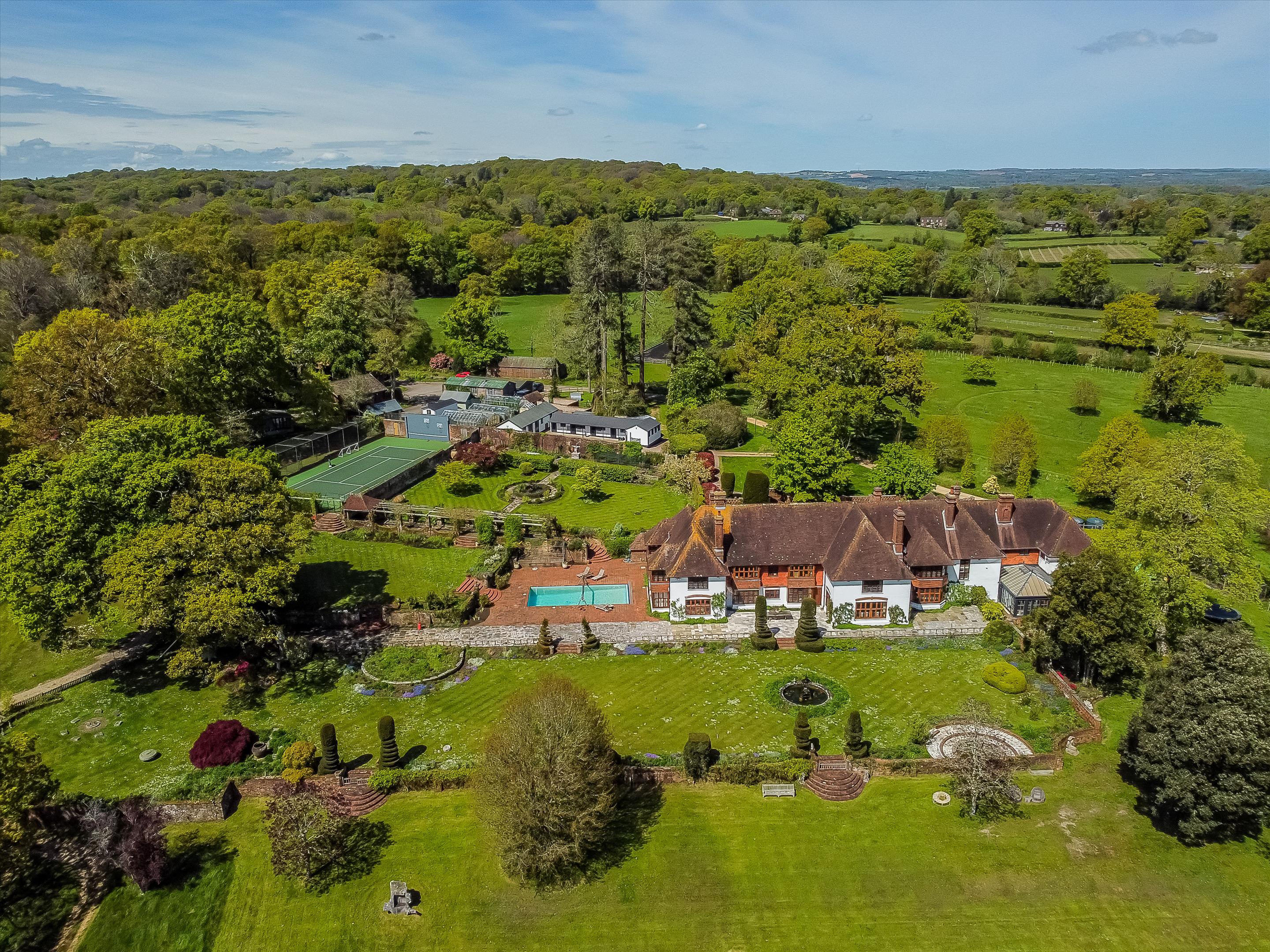 Completely surrounded by the New Forest, the house is designed to maximise its setting. The approach is up a long sweeping drive through the lovely grounds. The formal rooms are beautifully proportioned and open to a fabulous terrace and swimming pool that overlooks the lake. All the main bedrooms also have views to the lake. As expected from a house designed for entertaining, Fountain Court has a superb range of utility rooms, a back staircase that leads to the laundry area and 2 bedroom staff flat making 11 bedrooms in total.