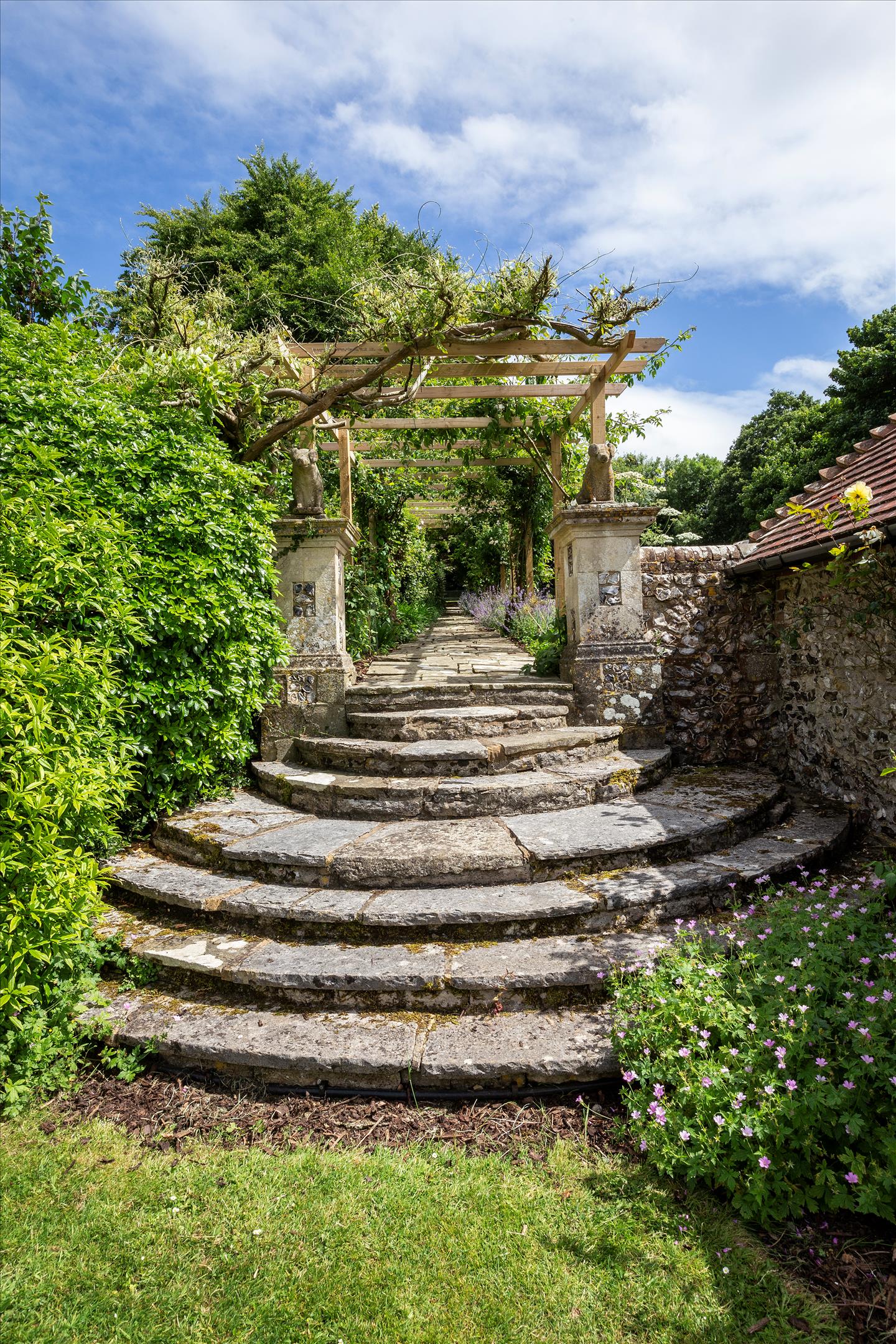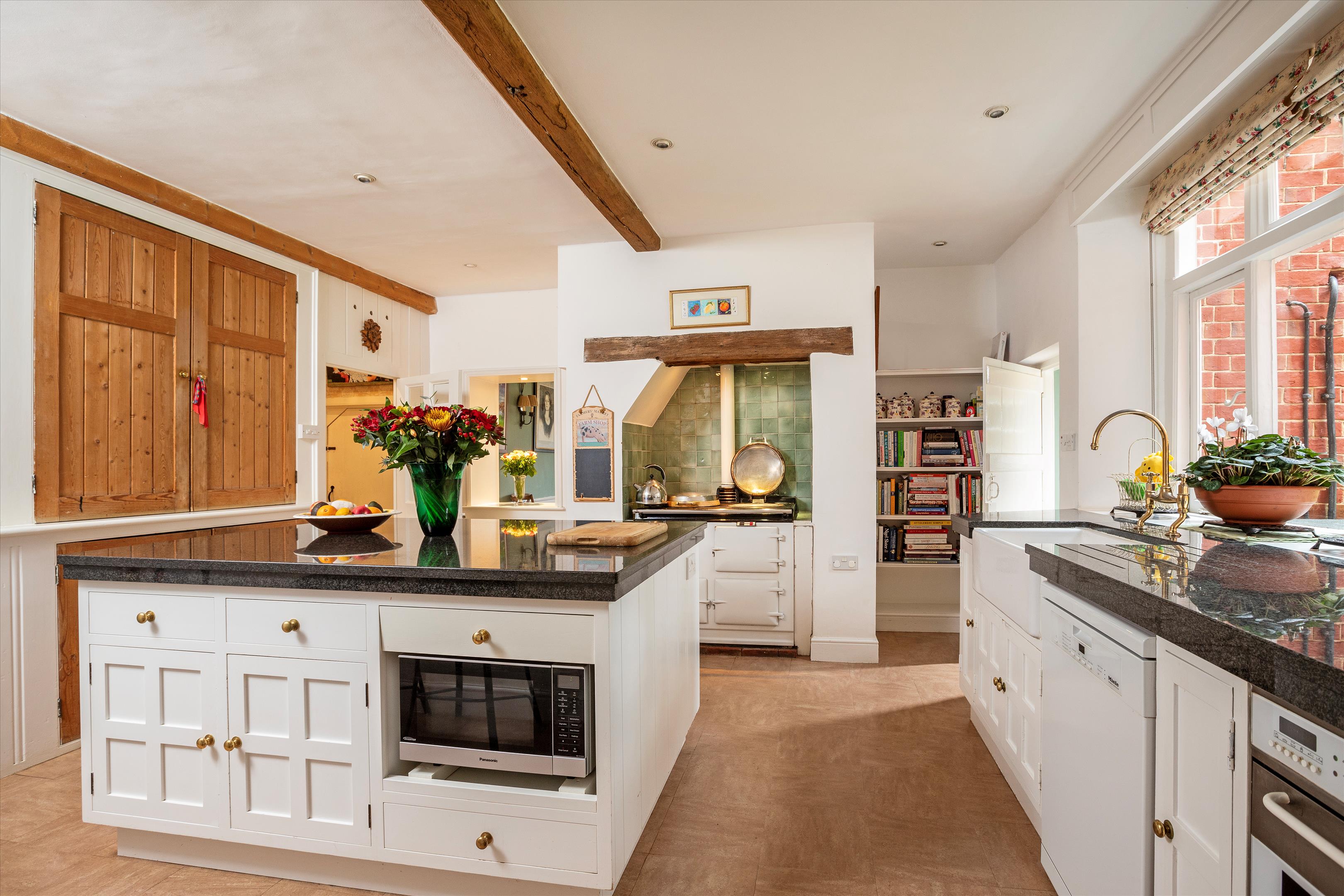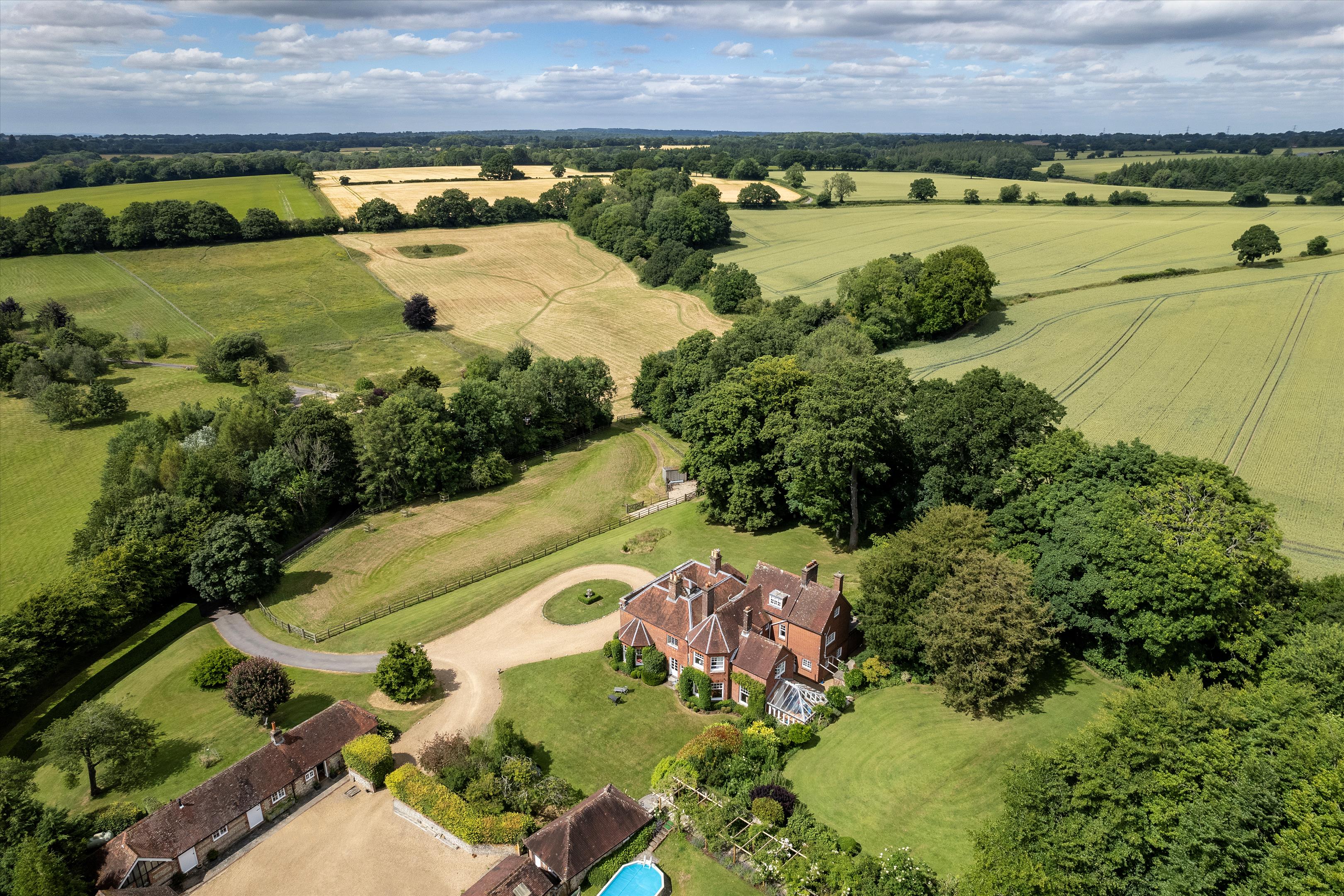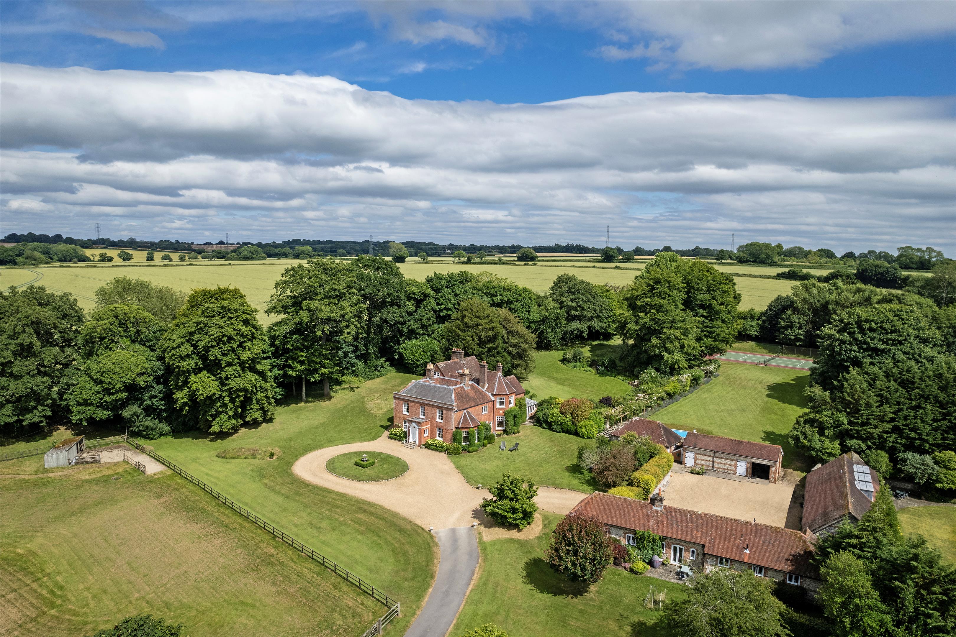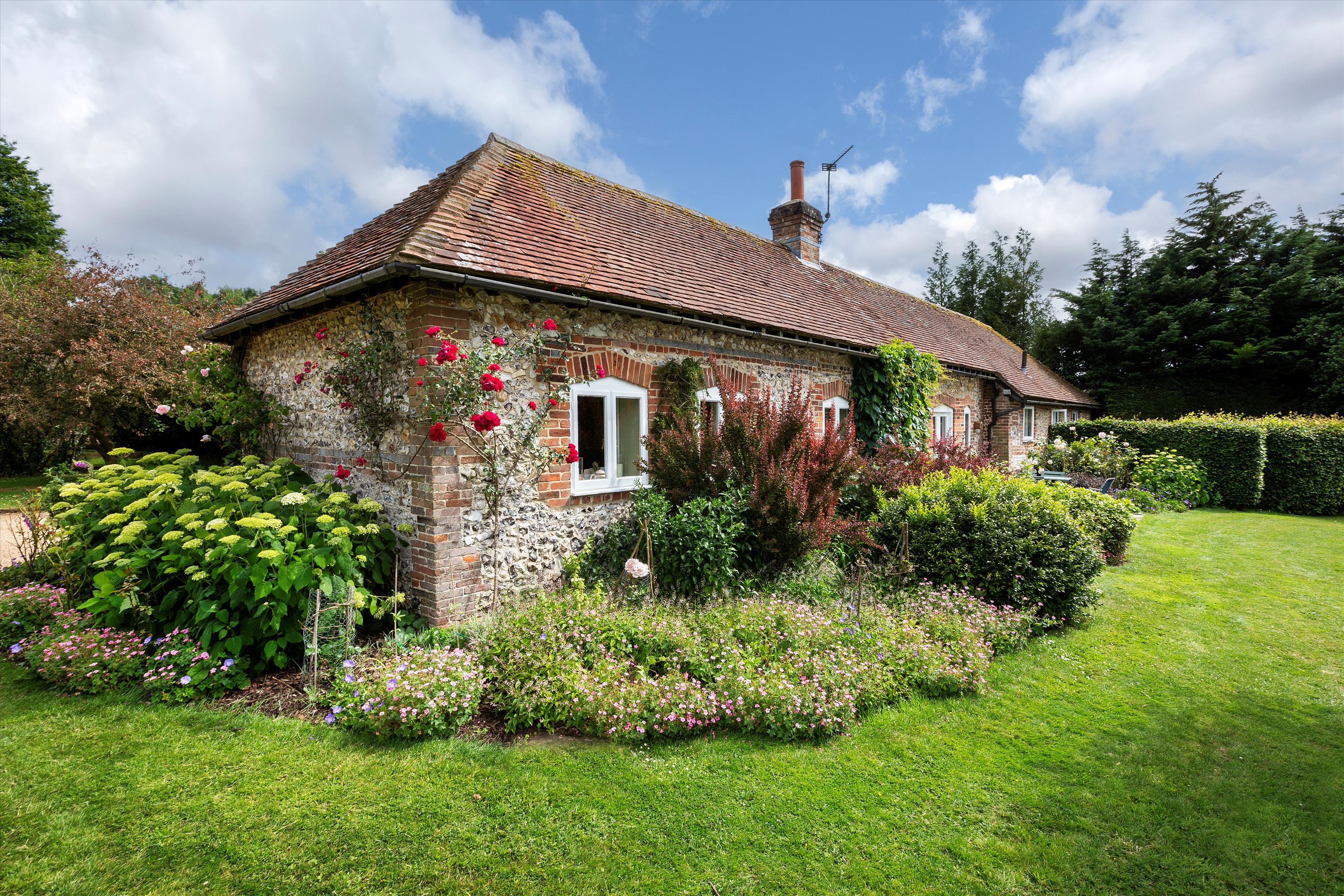 Situated to the southwest of the house, with a separate access from the main drive, is the courtyard of outbuildings, constructed of brick and flint with a tile roof, and comprise a collection of stores, stables and garages. There is also the very useful recently renovated two-bedroom stable cottage, ideal for family or staff use.