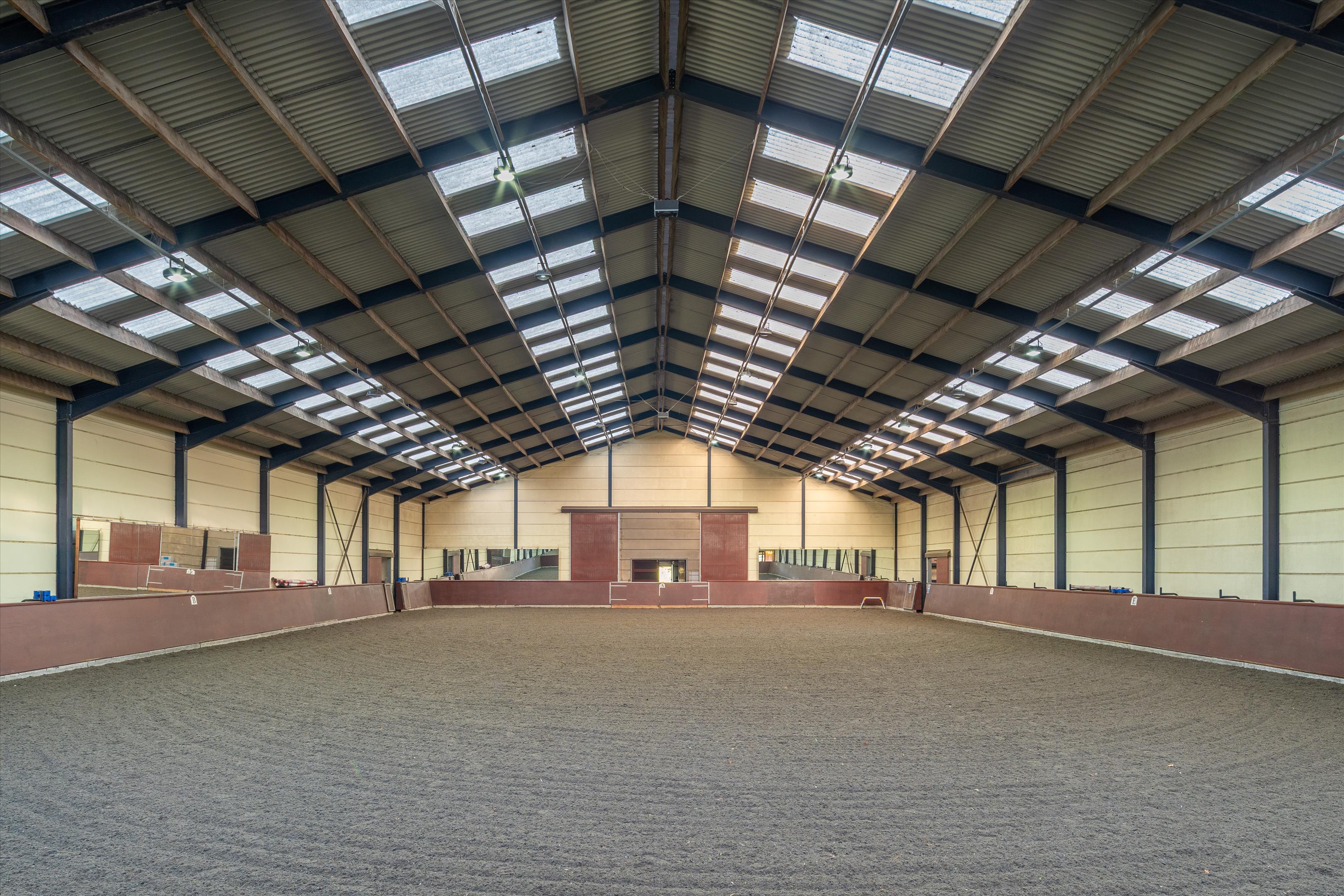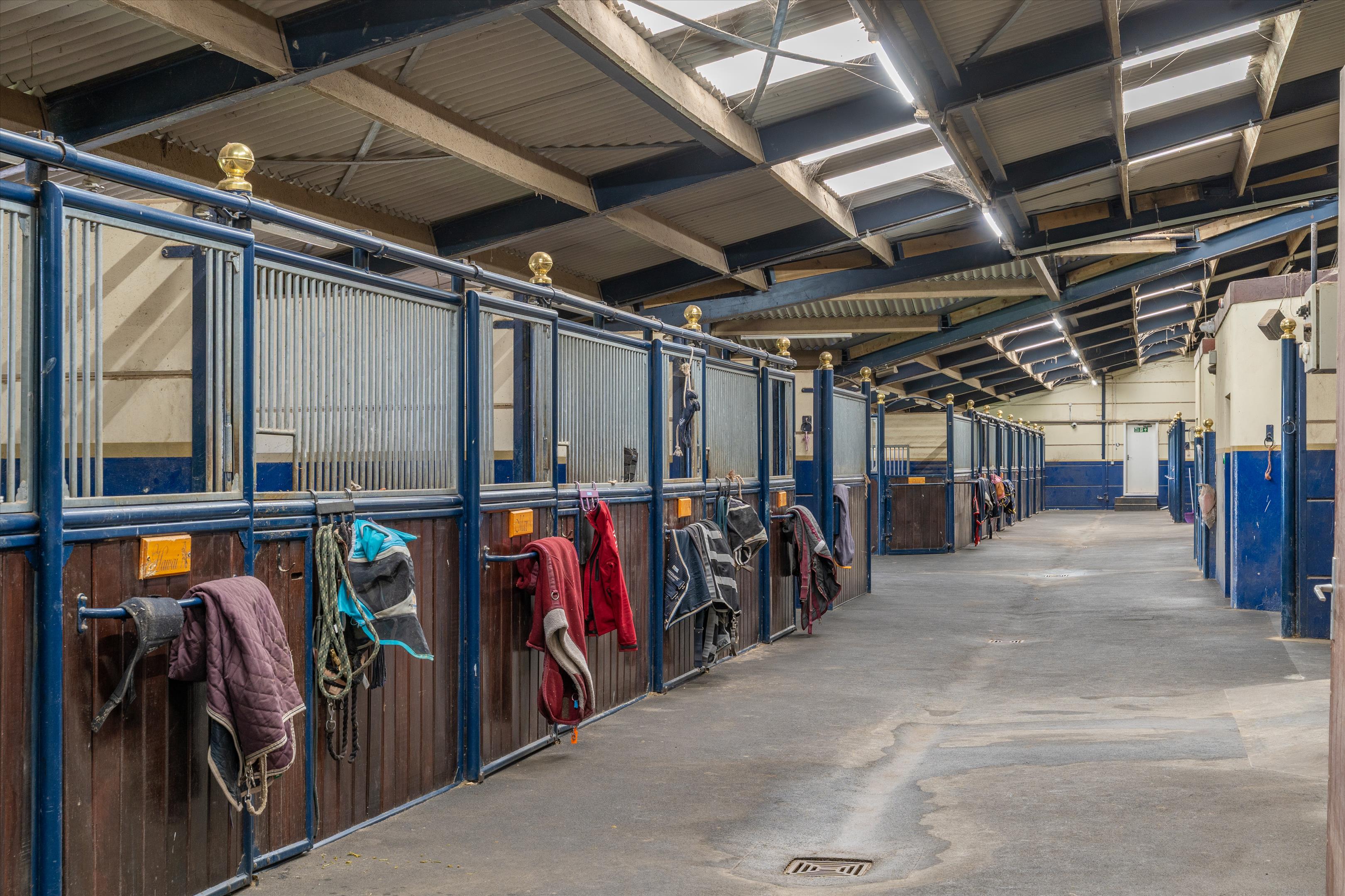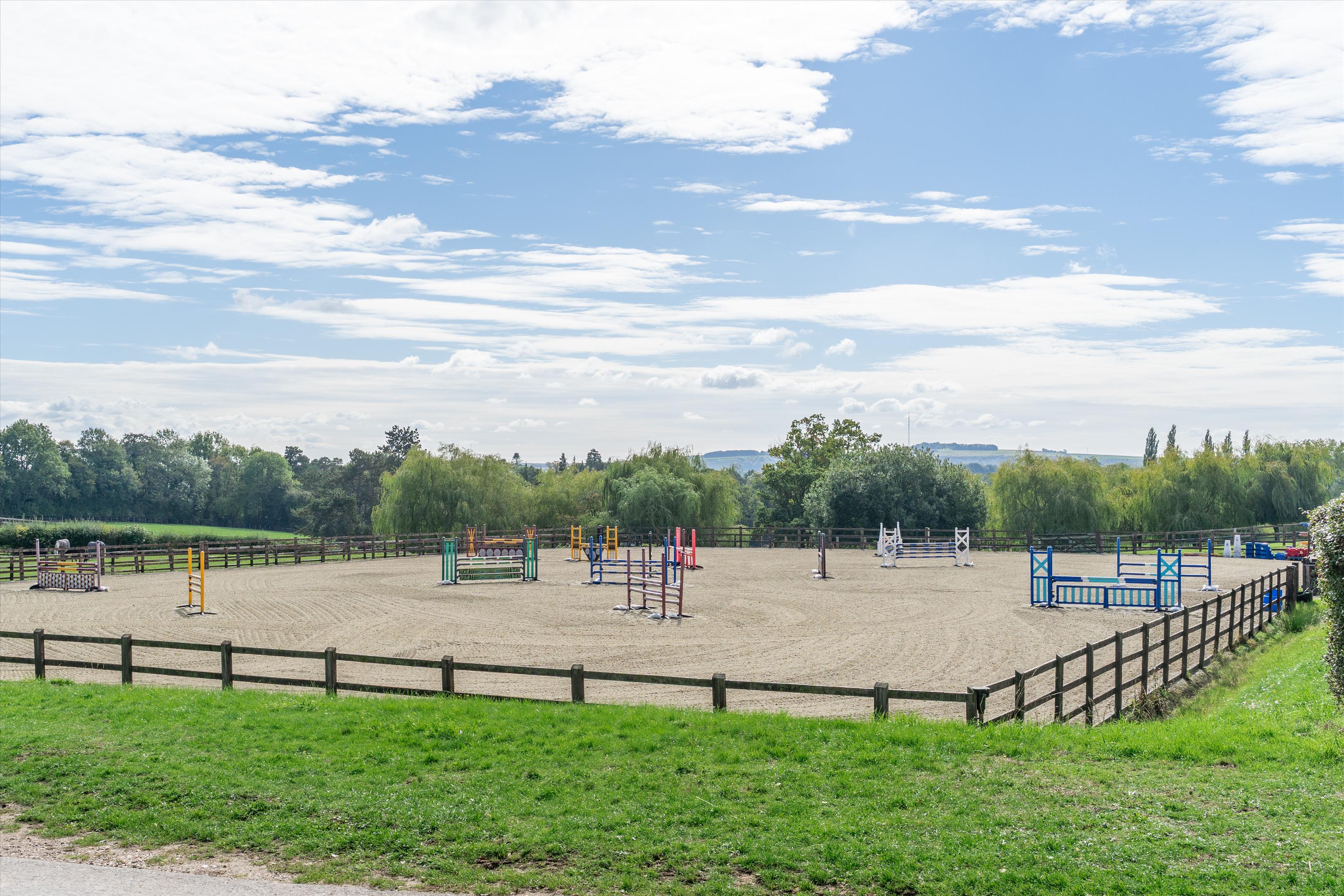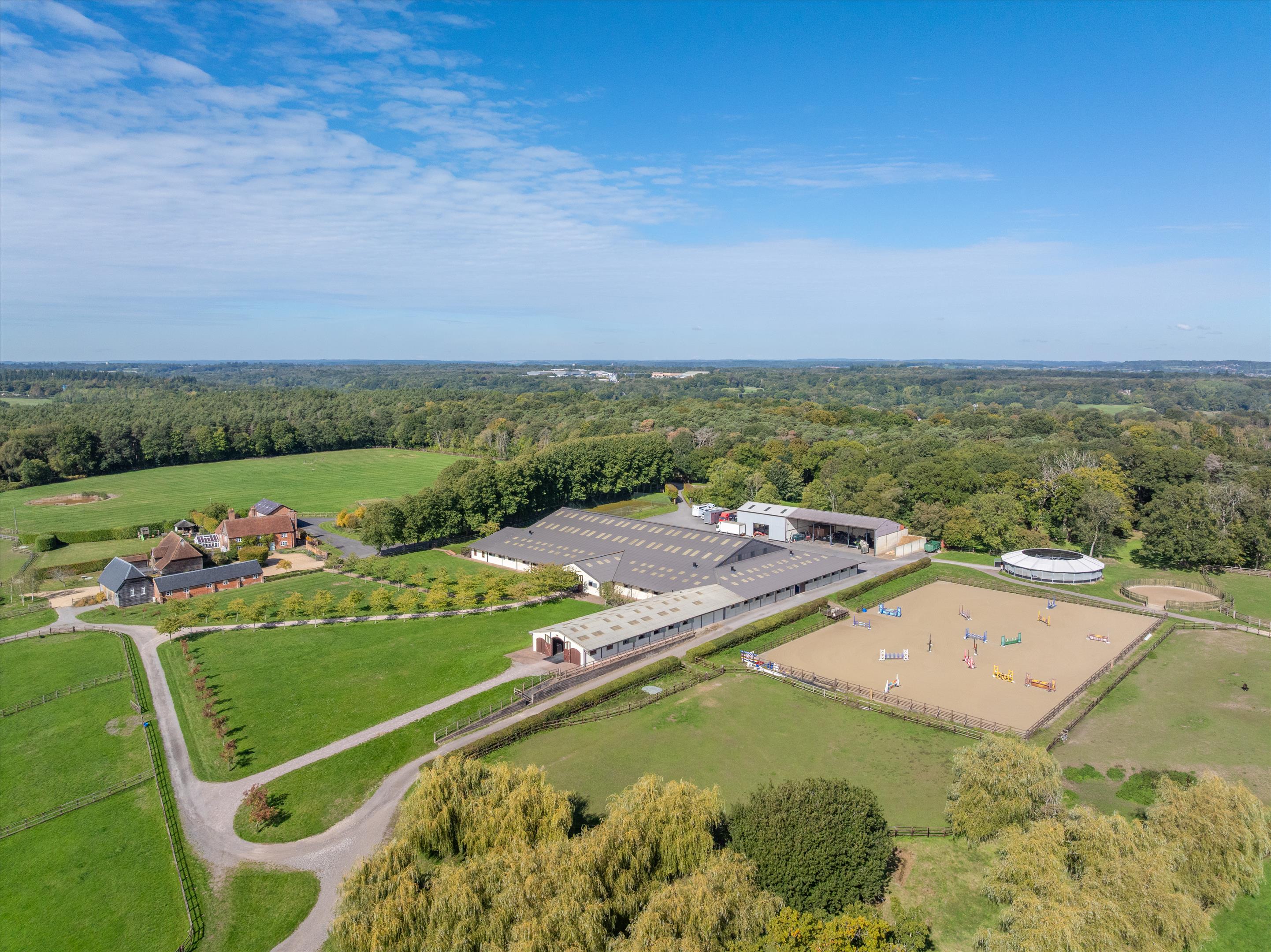 The equestrian centre sits within approximately 71 acres (29 ha) of post and rail paddocks and pasture, with an approximate further 104 acres (42 ha) of woodland.