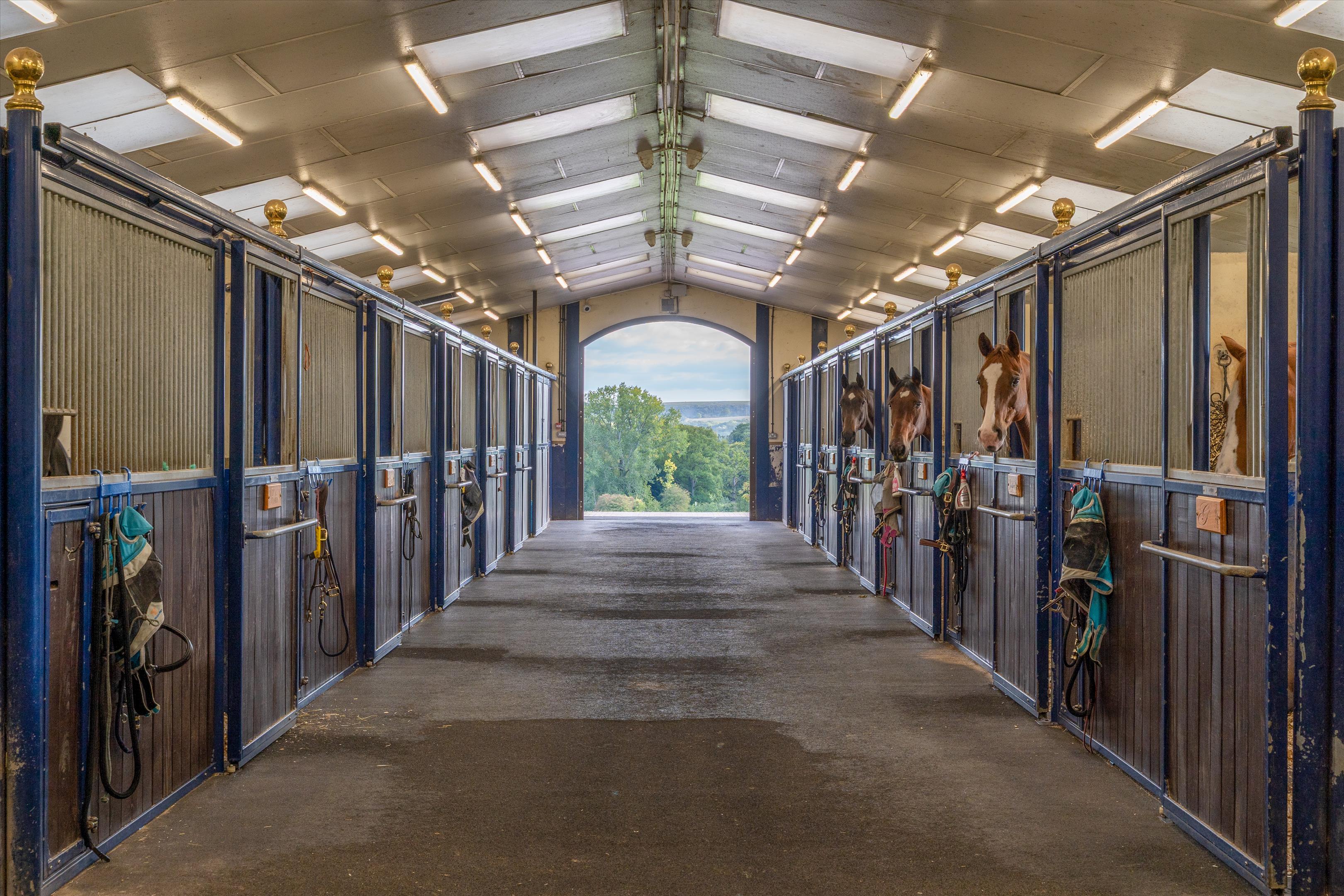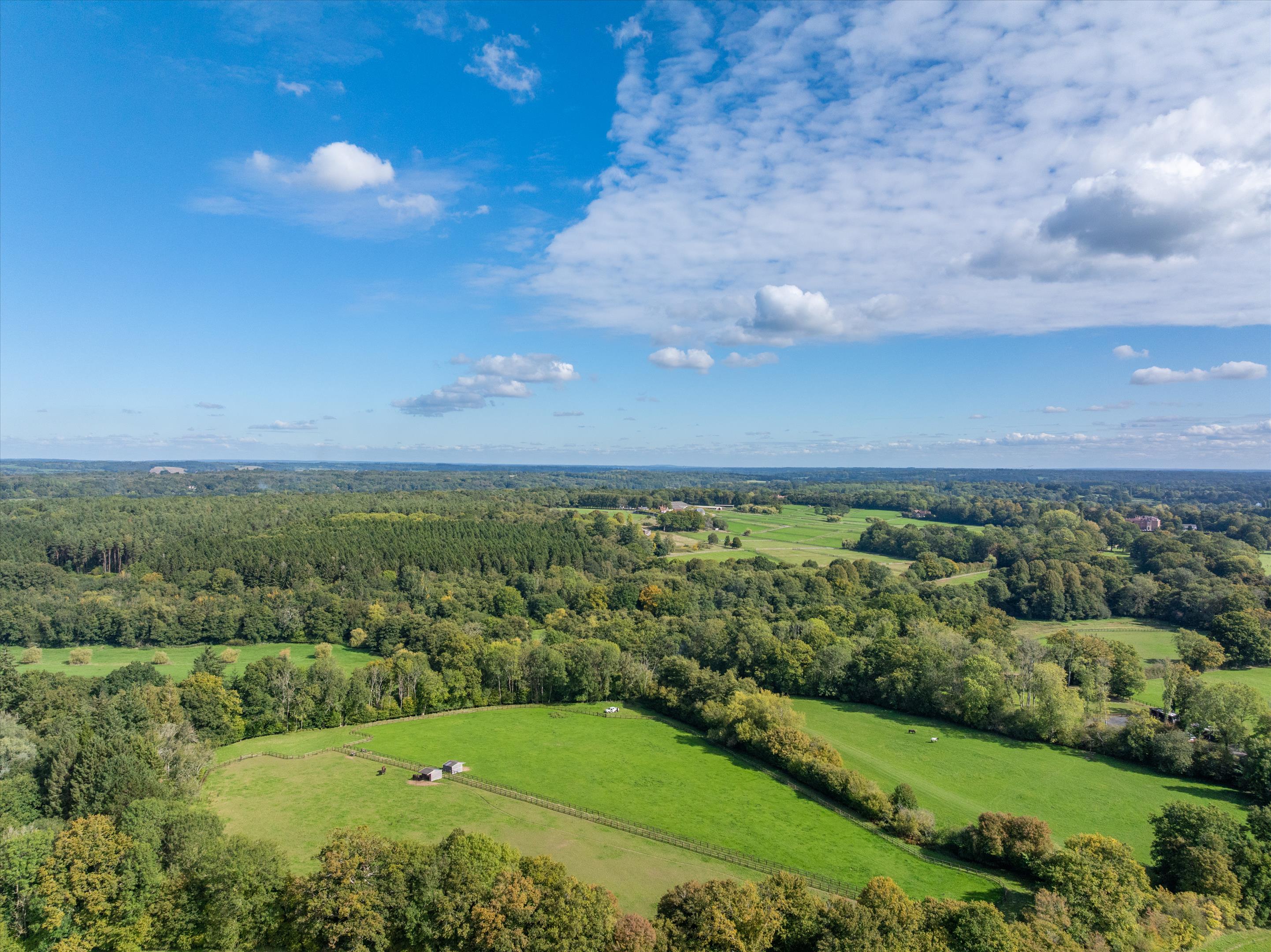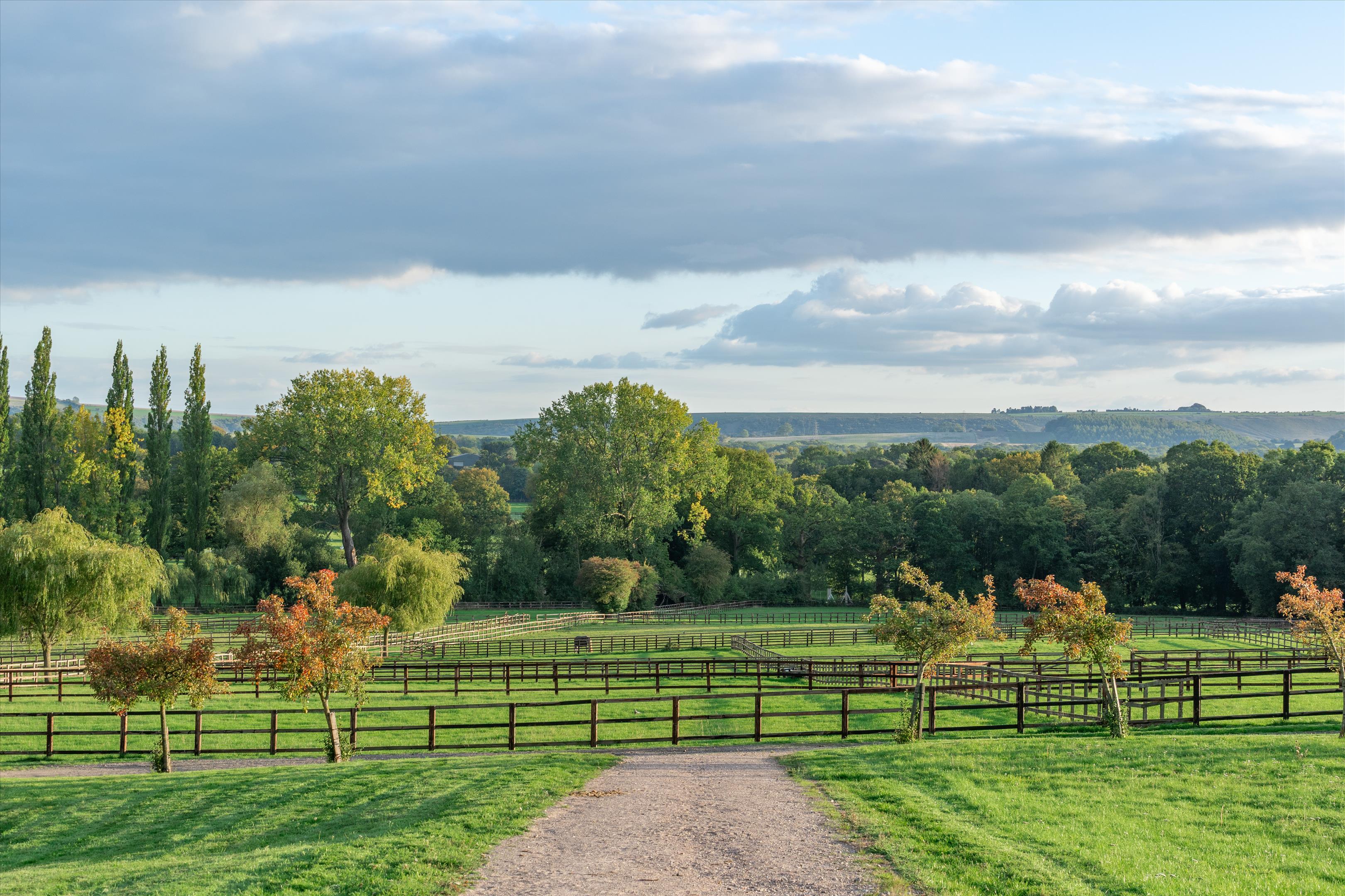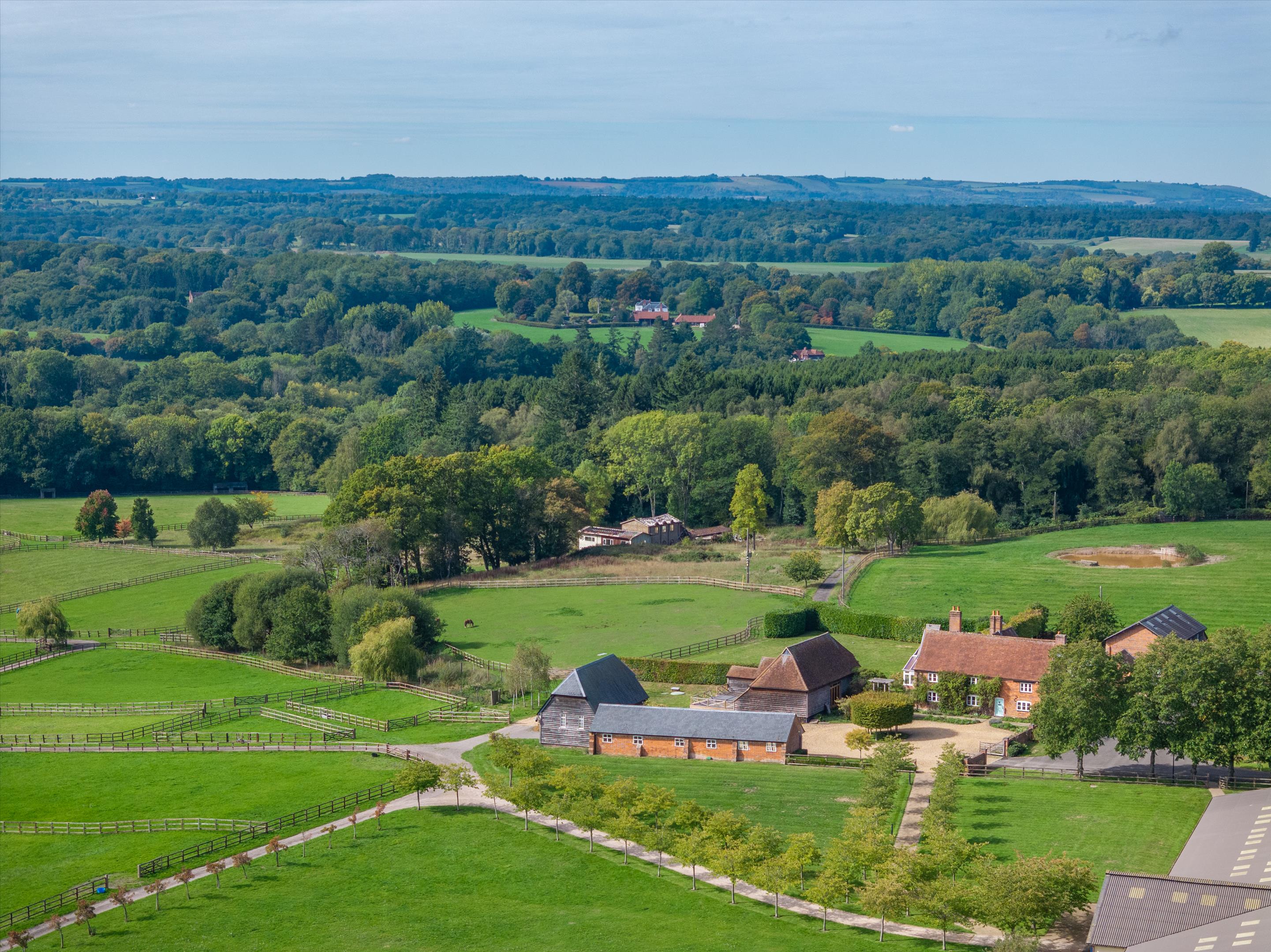 The equestrian centre sits within approximately 71 acres (29 ha) of post and rail paddocks and pasture, with an approximate further 104 acres (42 ha) of woodland.