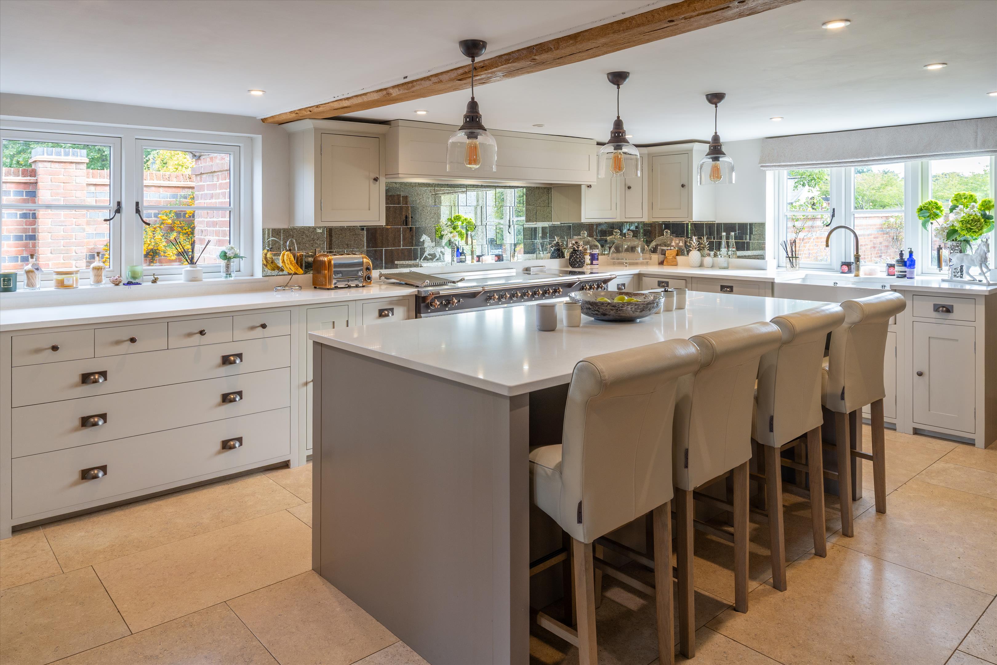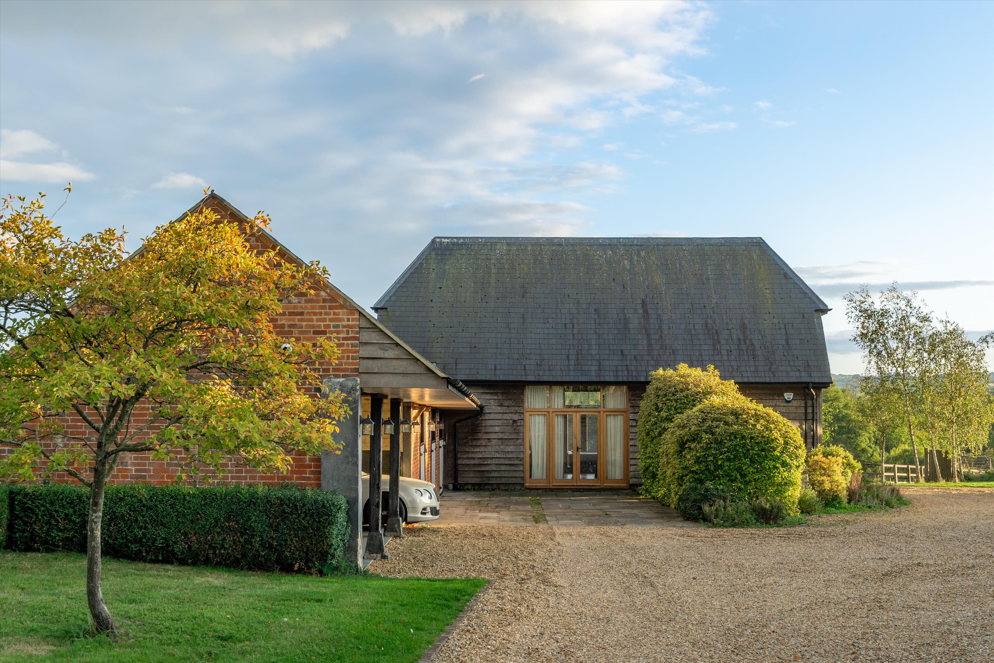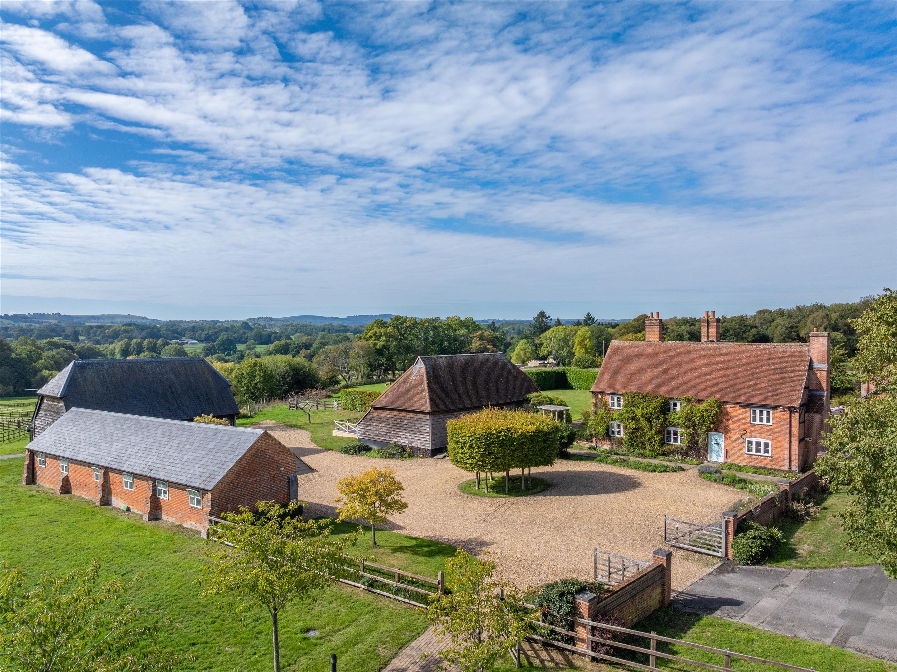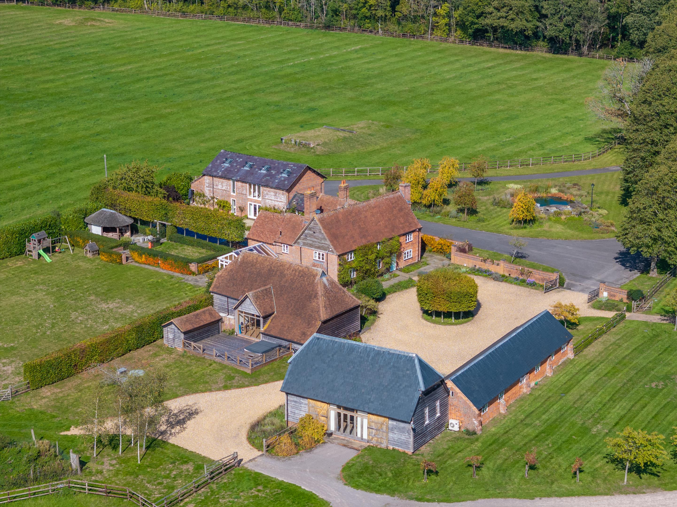 Headley Farmhouse is a pretty Grade II listed, four-bedroom farmhouse presented in excellent order having been refurbished by the current owners. Positioned at the head of the tree lined drive, the property sits perfectly at the centre of its land, set within a part-walled gravel courtyard. To the rear of the farmhouse is a walled, terraced entertaining area, with covered outdoor dining as well as a swimming pool and hot tub.