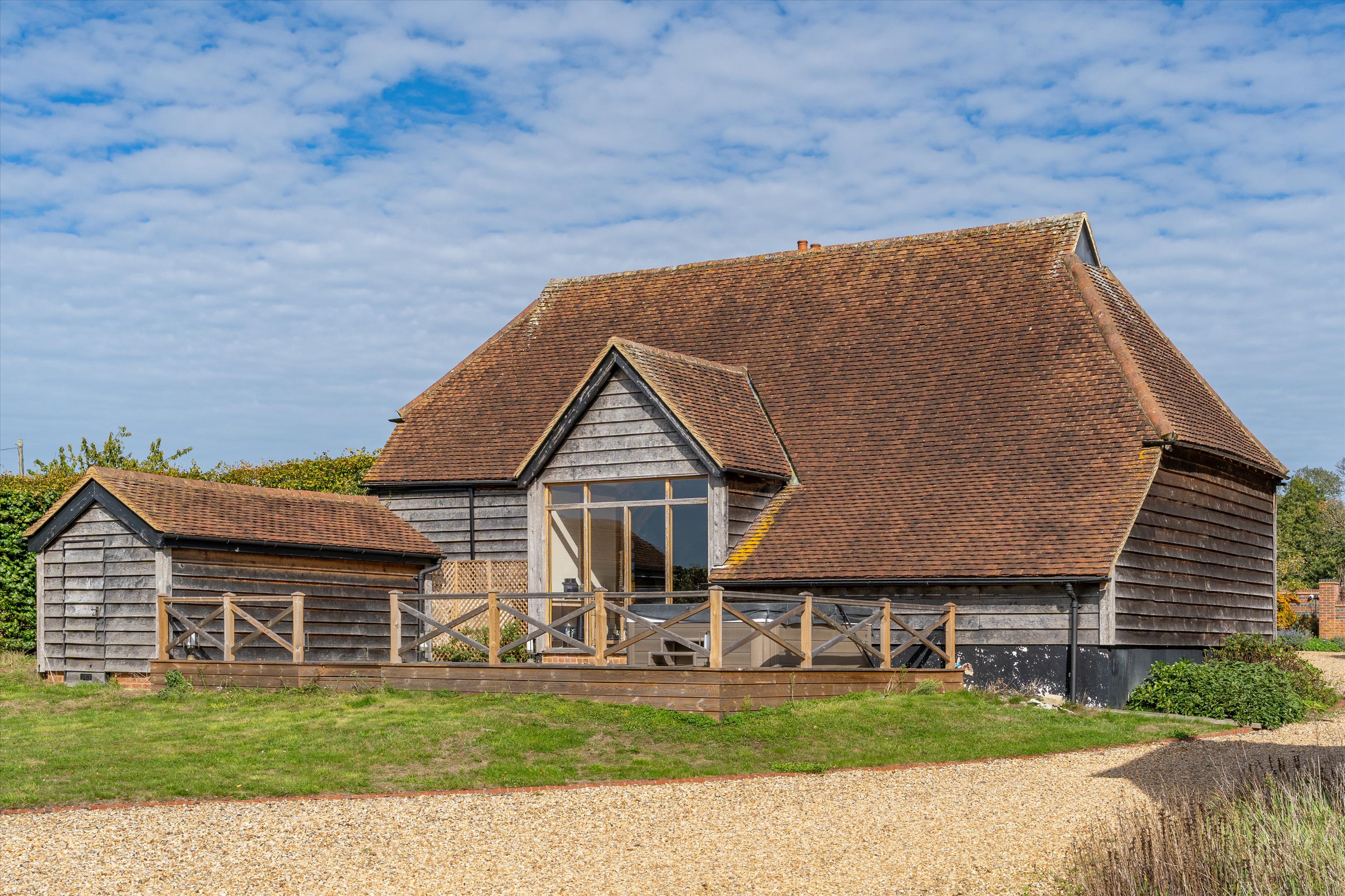 The second converted barn provides a flexible space with a kitchen, bathroom and an open mezzanine. Attached are three brick-built stables and a three-bay open-fronted garage block.