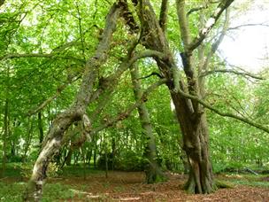Situated over mostly level chalky flint loamy soil, this magnificent woodland is host to a wide variety of tree species – the upper canopy includes beech, oak, ash, horse chestnut, sycamore, cherry, yew, Scots pine and cedar. Within the shrub layer below, alder, linden, rowan, holly, hazel coppice, field maple and hawthorn can be found.