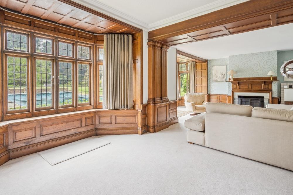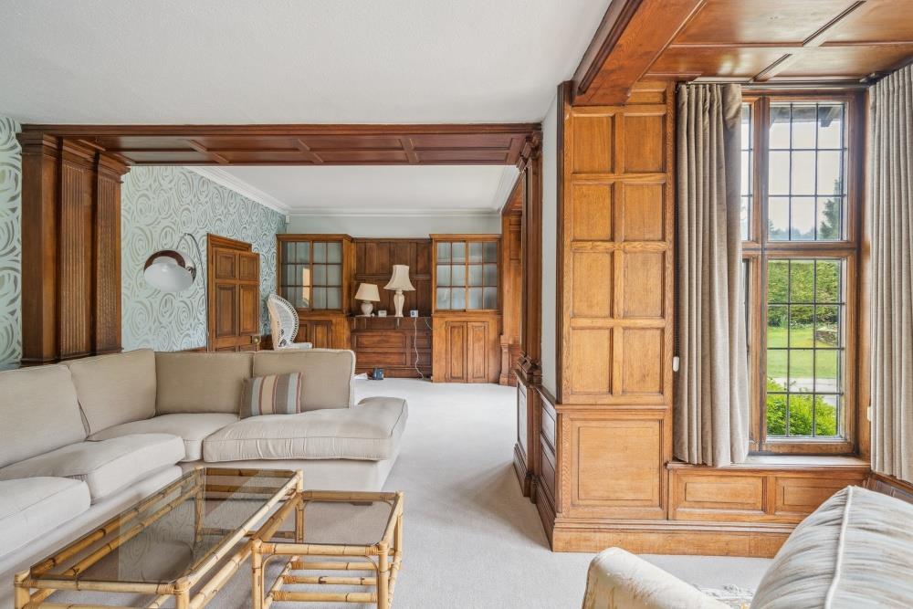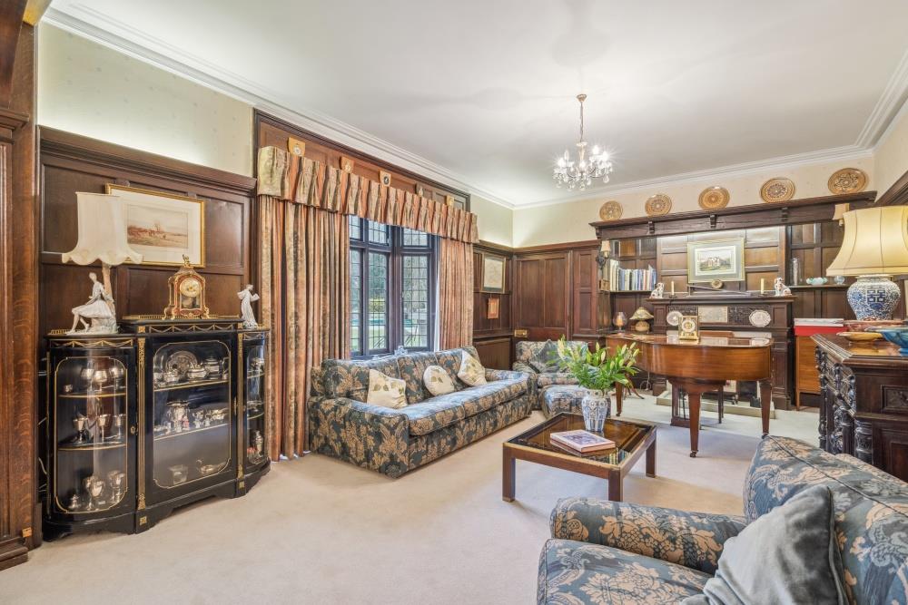 You enter the property via a long, private driveway off Park Road, leading to a gated entrance and ample driveway parking. Upon entry, the home reveals a welcoming boot room that leads to a striking entrance hall adorned with a grand fireplace, exquisite panelling, and a feature staircase rising to an elegant galleried landing above.