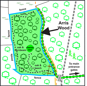 Arris Wood is situated approx. 3km south-west of Biddenden and 4km north-east of Benenden in the county of Kent. A private stoned track provides access to the wood. There is a place for a new owner to park within the wood itself. From here, a private walk track takes you to a rustic bench placed in a small clearing hidden deep within the woodland. A private walk track has also been created inside the boundary of the wood enabling a new owner to easily access and explore the woodland. For more information on the trees please see the ‘Trees’ section below.