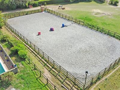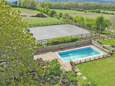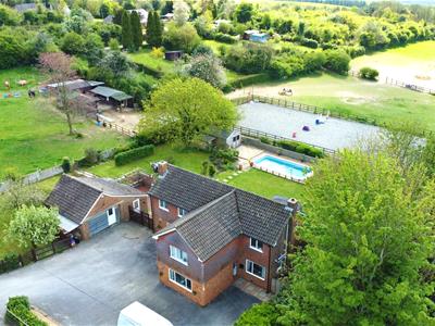 A generously proportioned & well presented detached 4 bedroom family home set in 4.2 acres (*TBV) with well equipped equestrian yard, including a professionally installed 40m x 20m flood lit riding arena with new fibre surface, five stables, a tack room, hay barn and toilet along with well maintained paddocks offering year round grazing. Further outdoor swimming pool and large detached former garage building currently used as a guest Suite & home office.