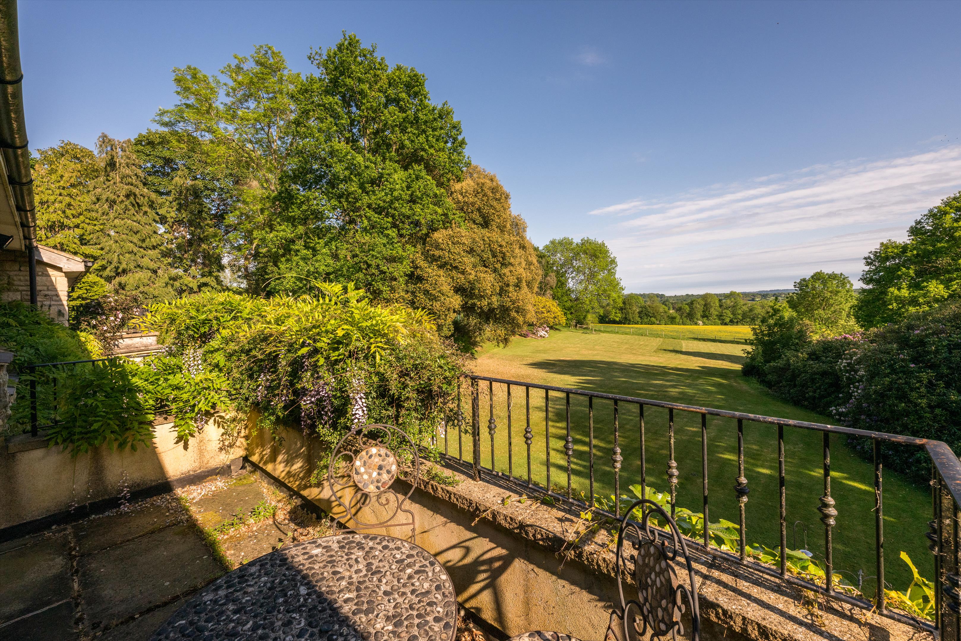 On the first floor, the spacious landing gives access to the principal bedroom and bedroom 2 which both have an en suite bath/shower room as well as balconies overlooking the gardens and wonderful rolling countryside beyond. There are three further bedrooms (one with an en suite bathroom) on this level as well as a family bathroom and a large attic room.