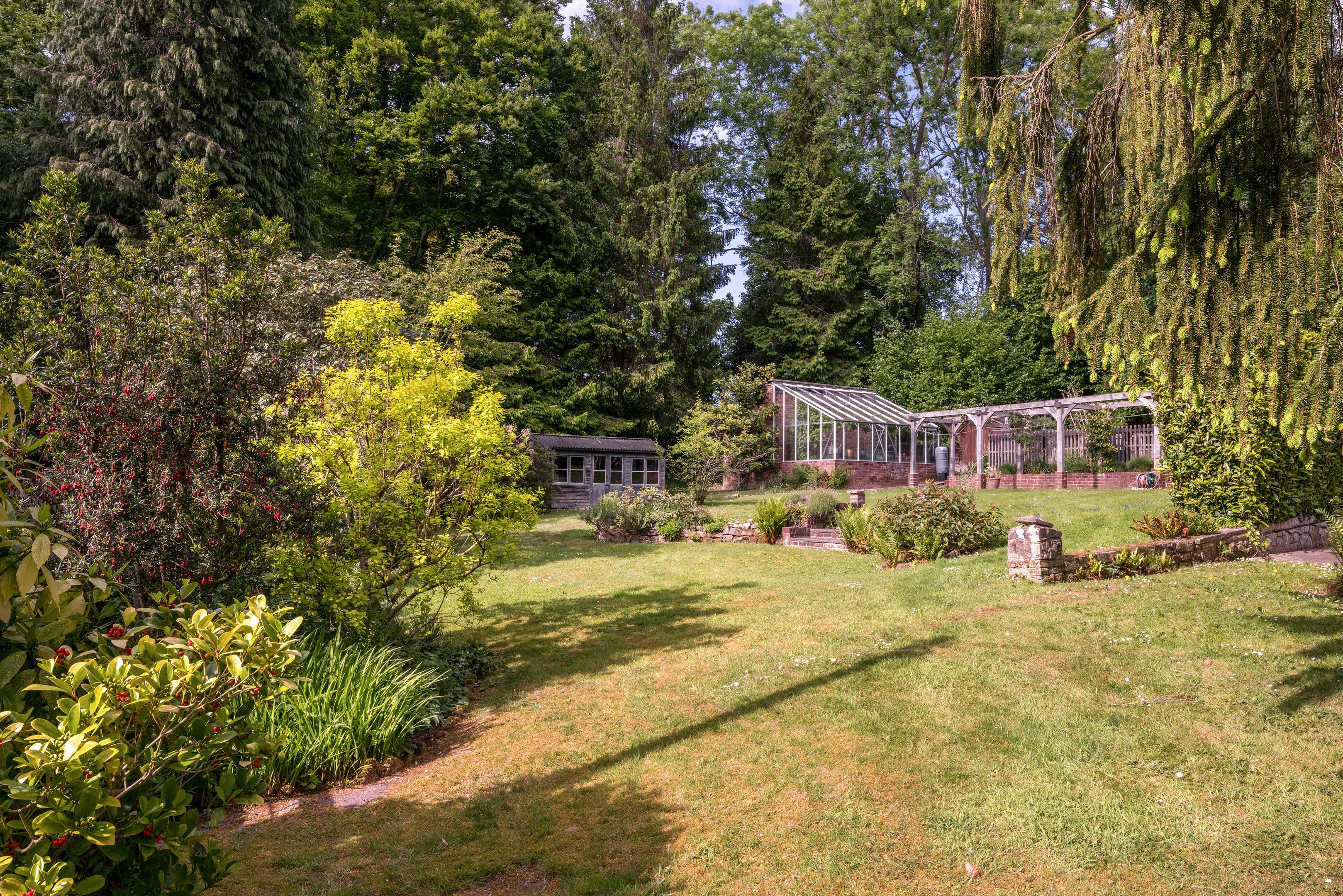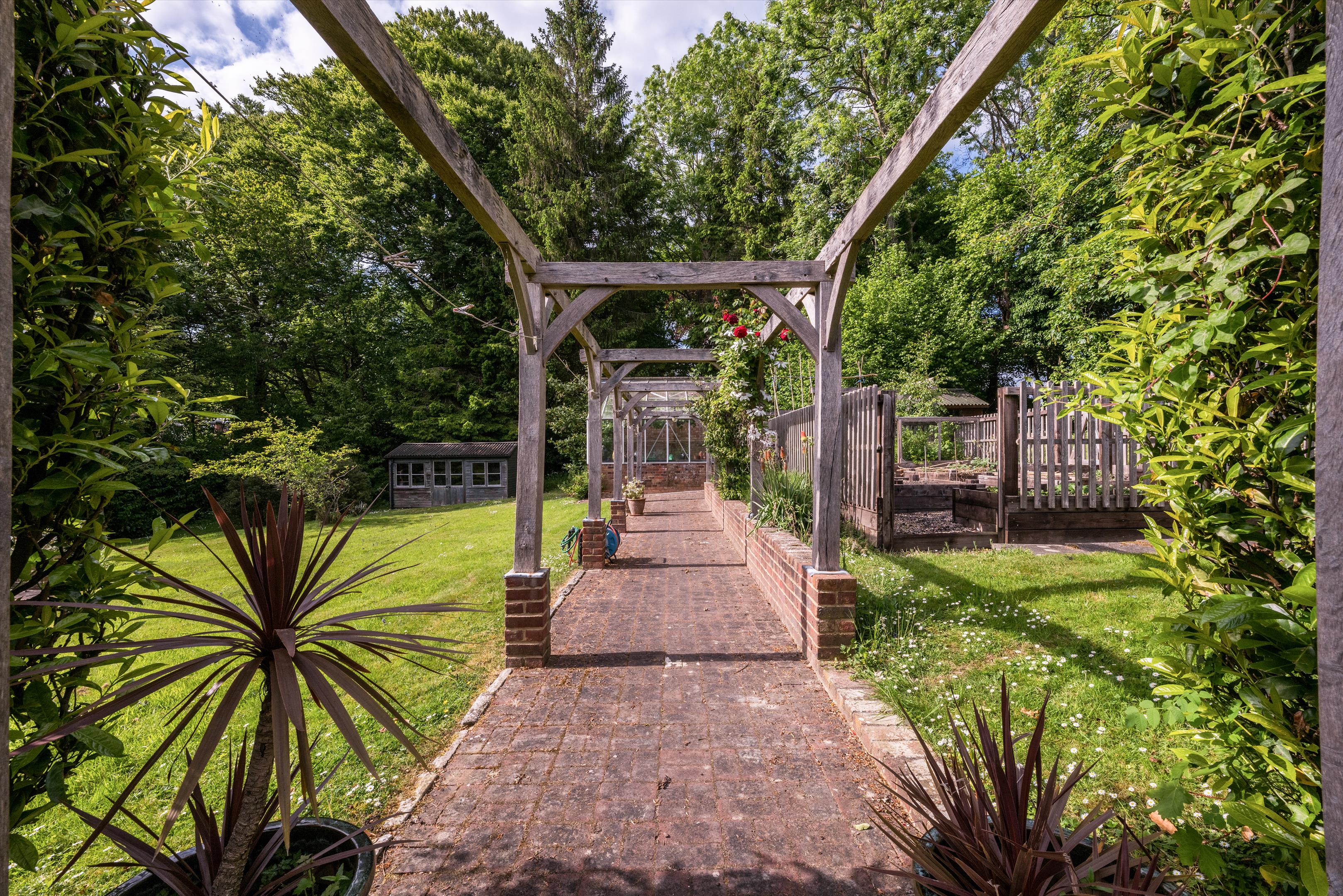Opposite the house there is a pergola walk leading to the vegetable garden and greenhouse. There is an additional greenhouse to the rear of the garage. Both greenhouses contain a mature Black Hamburg grapevine with plentiful grapes each year.