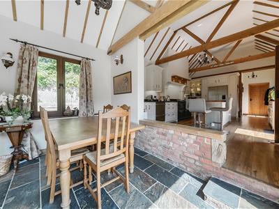 ACCOMMODATION - This stunning converted barn offers versatile 3/4 bedroom single storey accommodation and boasts an air of spaciousness and light throughout the interior complimented by a plethora of beautiful oak timbers and an elegant mix of character features with modern contemporary aspects.