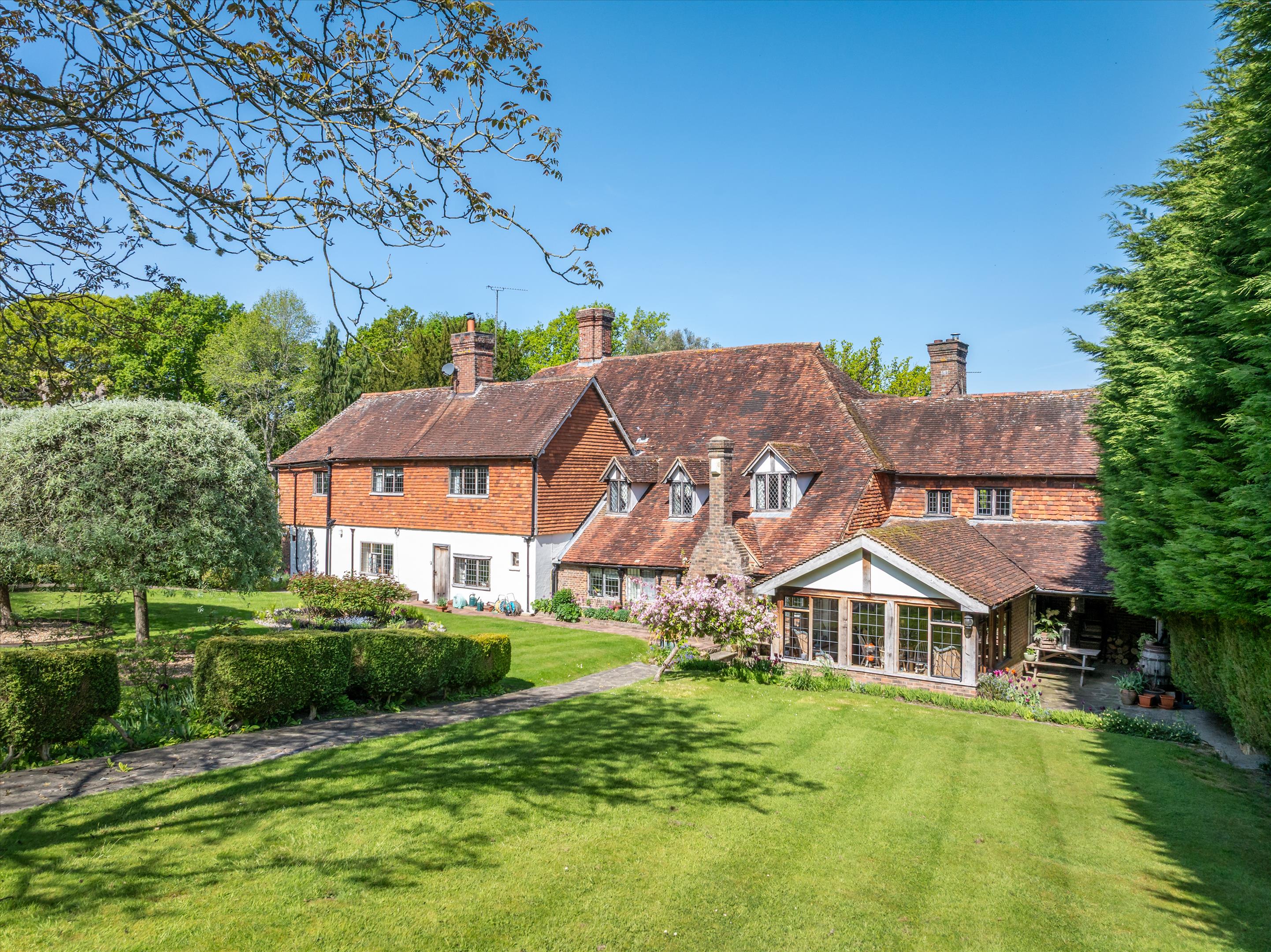 Gatehouse is a remarkable Grade II* listed home set on elevated ground with stunning views over its gardens, paddock, and the countryside beyond. Located in a peaceful yet accessible spot, the property features exposed timber and plaster elevations under a tiled roof.