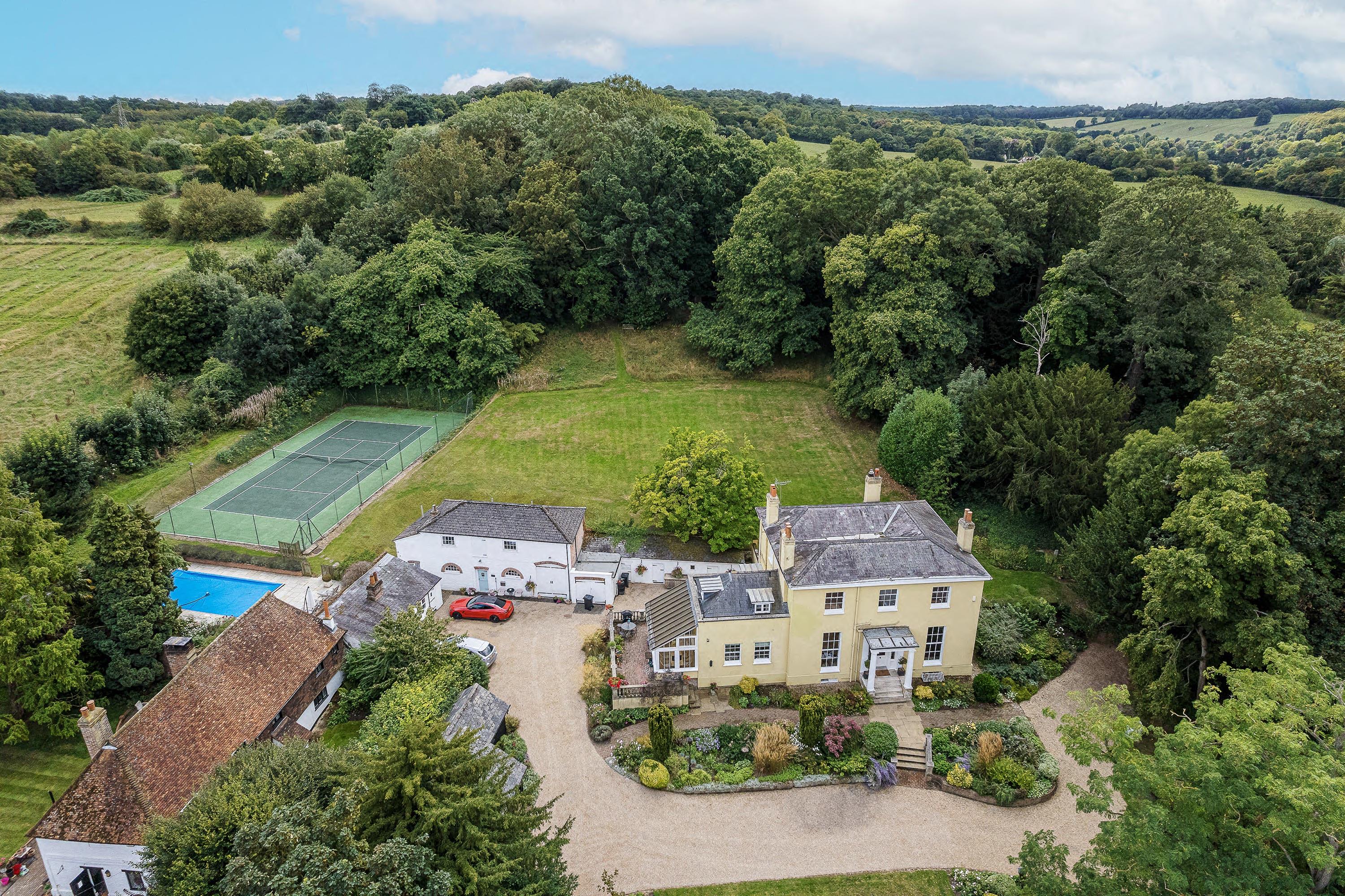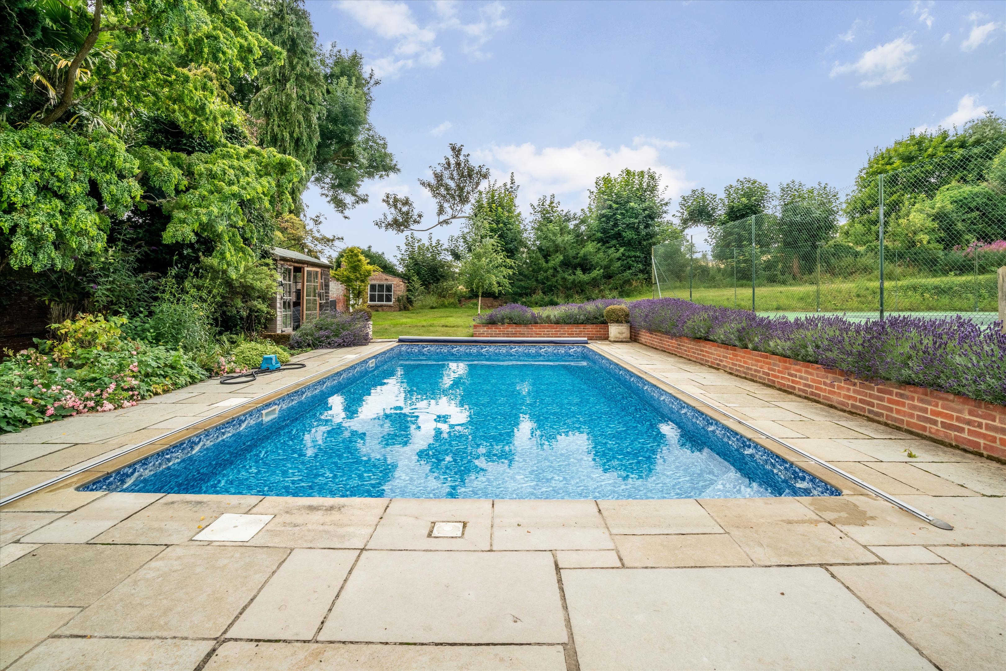 The delights of the house extend beyond its walls, stretching to 3.5 acres of well-manicured gardens, flower beds and woodland, the estate is surrounded by greenery. Nestled within the extensive grounds, you will also discover a recently refurbished tennis court and a swimming pool. There are also a number of outbuildings, including a workshop, wood store, a barn, which is currently being used as a games room, and multiple garages.